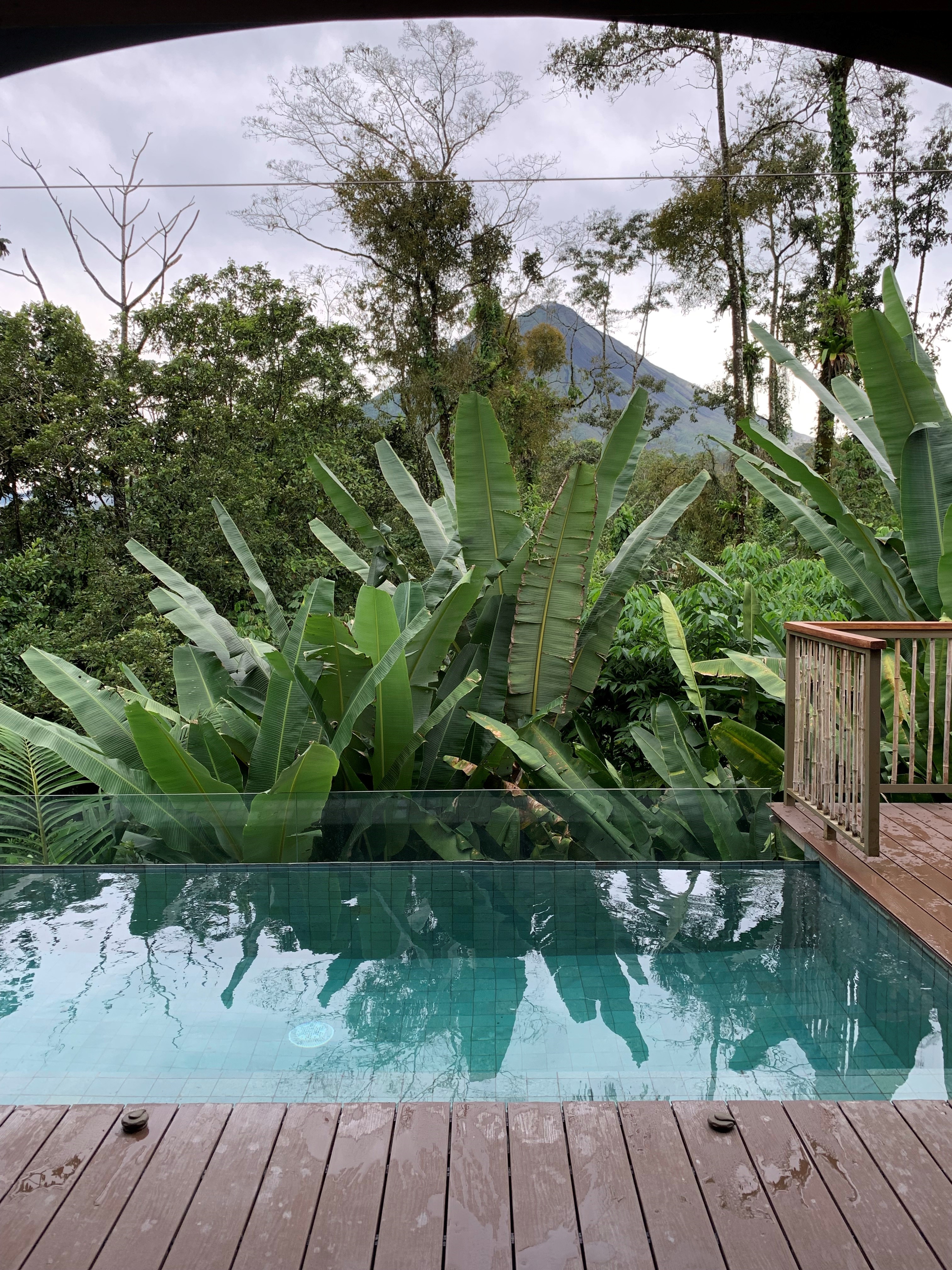 上星期刚从哥斯达黎加回来,去程从ewr走买的直飞商务舱,用了aspire买的ua travel bank。过安检后直奔UA Club, 随便吃了点+自带shrimp泡面, 早班机商务舱 居然提供热食,我也是惊了。一般都是冷的三明治打发。前两天烧了40000点安达士,环球客没给套房,给了个海景双床,两天都在酒店游荡,去了andaz beach house玩了SUP,其他时间就吃吃喝喝,自费150刀。 后面四天转战Nayara Tented Camp(买三送一带早饭). 看官网效果图觉得景色不错,checkin后给的18号tent, 前面有树遮挡火山景色。