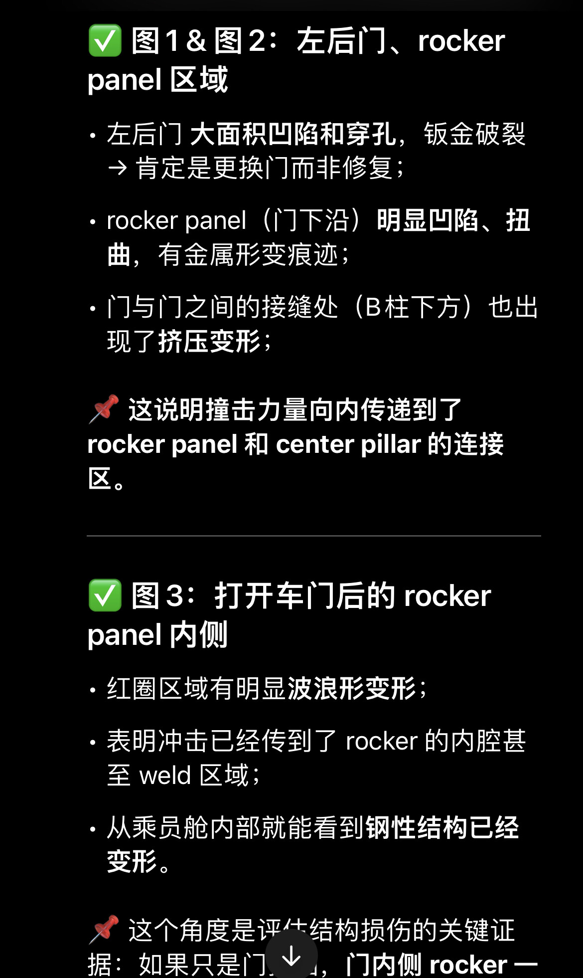 大家好,最近车子被人撞了,在谈修车的事情,好不容易跟body shop确定了能做ADAS calibration ,结果小红书给我推了个帖子,上面车子受损情况跟我很类似,他的保险公司跟他说有结构性损伤修起来很麻烦,我就开始怀疑我的车会不会也有…主要是我对接的对方保险很不负责所以只能自己把关,请问有经验的大佬,这种情况是不是应该在修之前做一个结构性损伤的检查啊?还是边修边检?问了chatgpt老师,但是想大家帮忙证实一下,毕竟有时候查老师睁眼说瞎话……