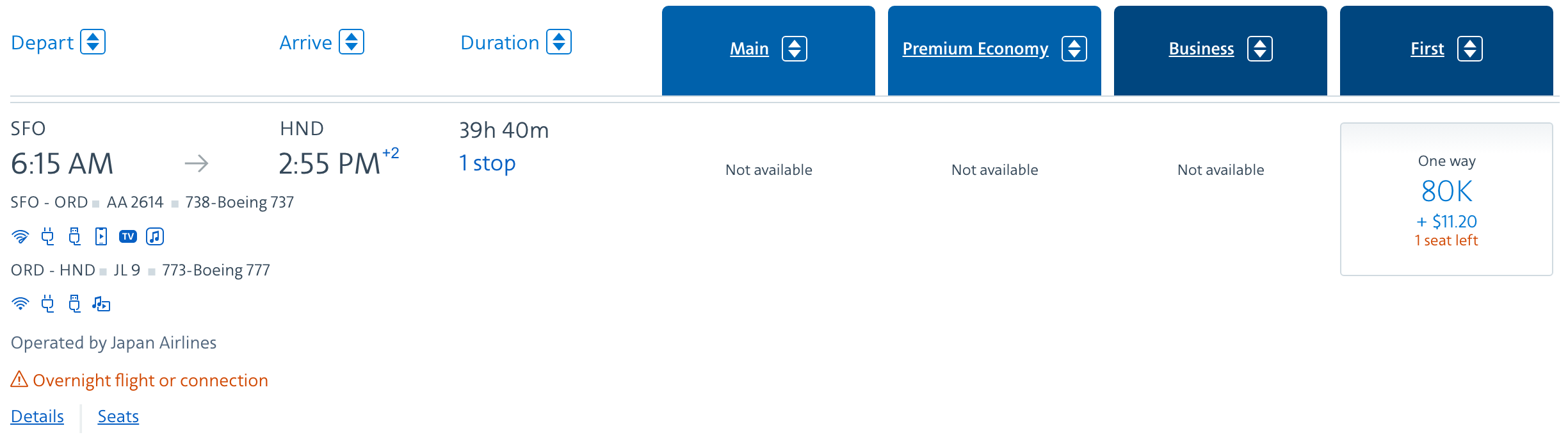 我去aa搜票甚至没看到first这个column,就只有经济舱 超级经济舱 商务舱 这三列