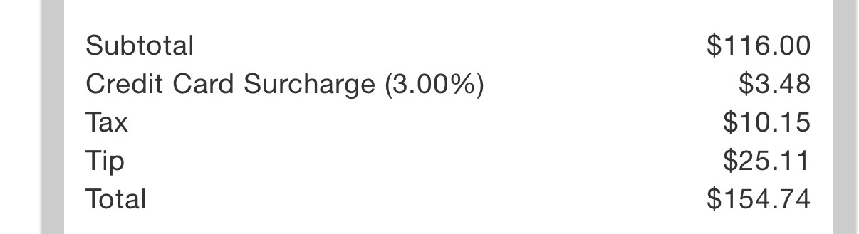 同周日试了Dallas Jose,和朋友吃了个brunch,味道还可以,但感觉收费有点黑,电子屏点的小费没认真看发现20%居然是税后的,然后电子屏看到的终价和信用卡最后charge的居然还有点不一样,回家看了眼text receipt,竟然还有3% 信用卡subcharge额…