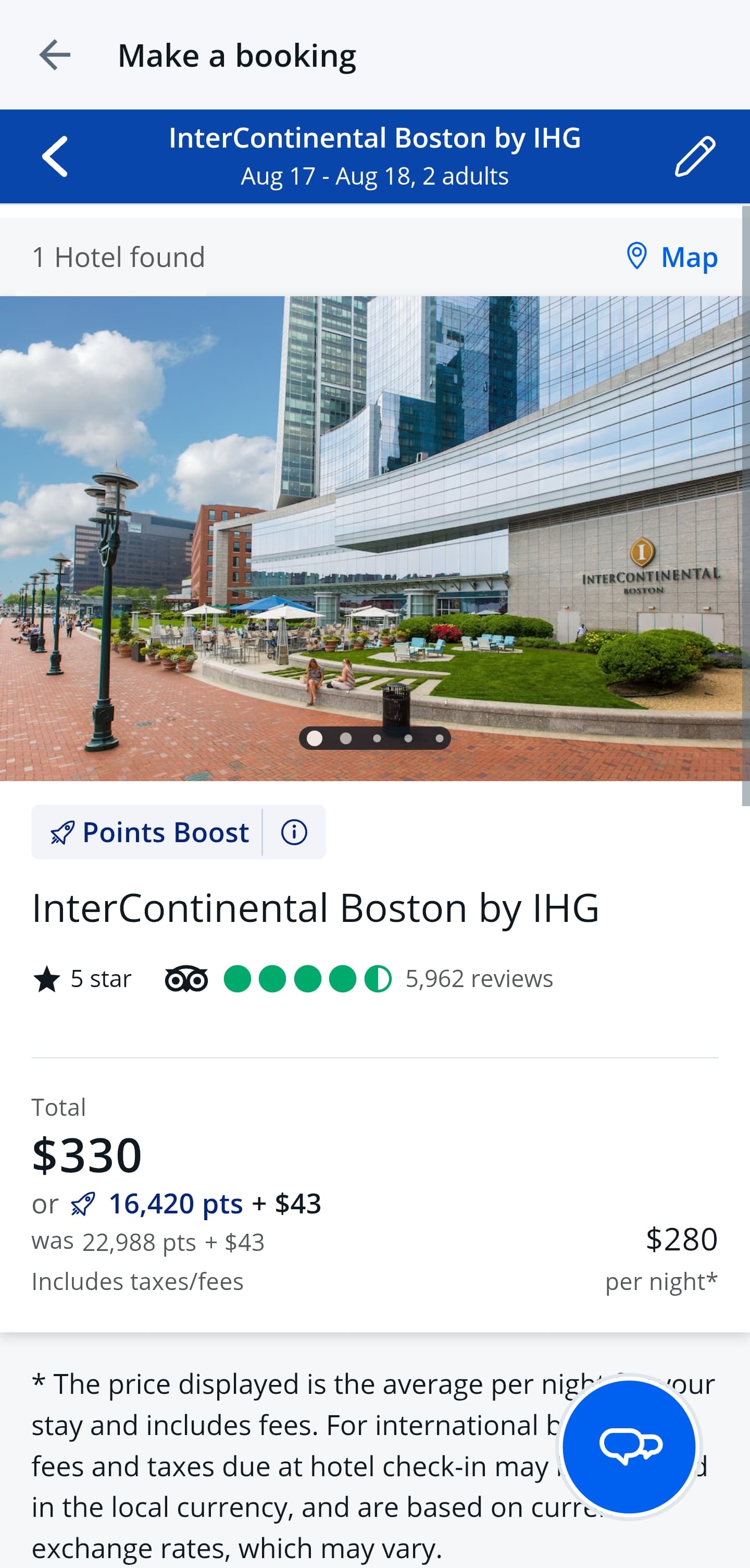 看了一下ihg的官网,330应该是没有member discount的价格,用ur点订相当于相当于现金房,还能拿回一部分IHG点数,最终算下来还是有差不多1.7的cpp,这下ur点的含金量还在上升