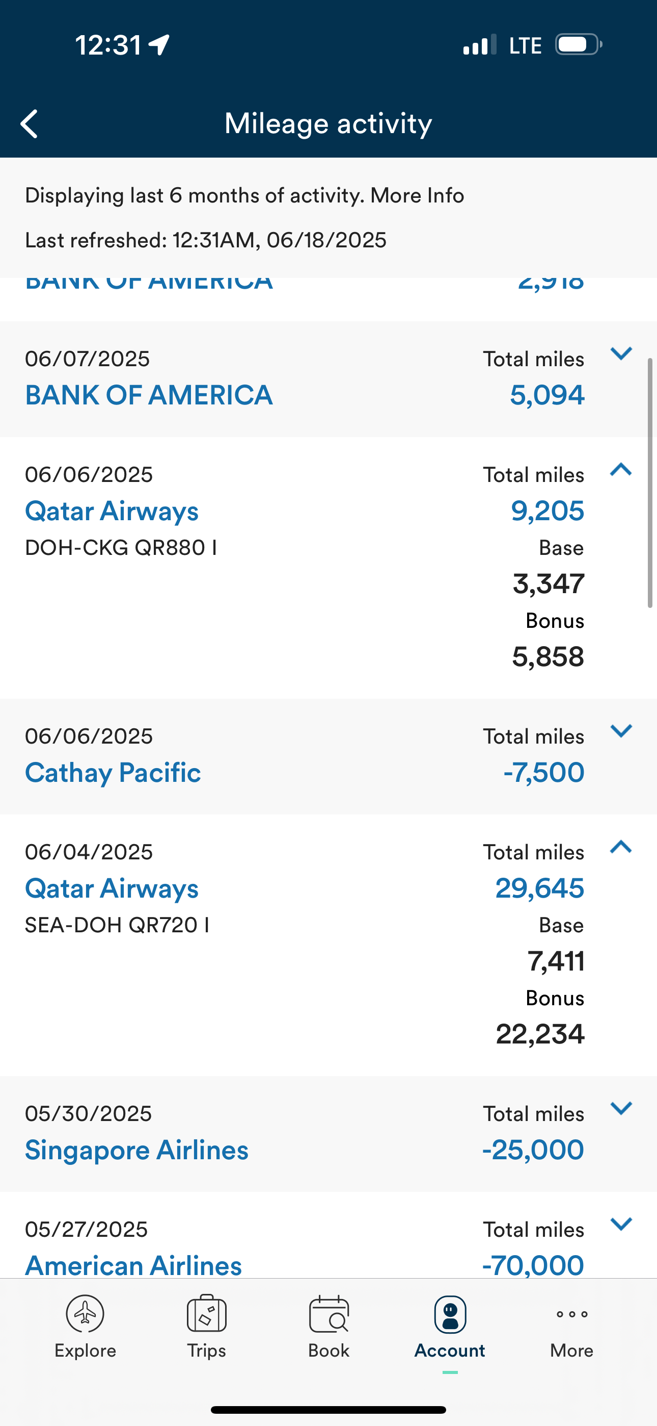 其实SEA-CKG(你没看错CKG)也有2000usd单程的商务,我本来去程换了QR SEA-DOH J + QR DOH-HKG的F但时间不太合适所以现金预定了AS出的重庆,飞完里程三四天入账了,也和预想的一样,但计算很迷惑,一段对一段错,等两程飞完我再给客服打电话好了。