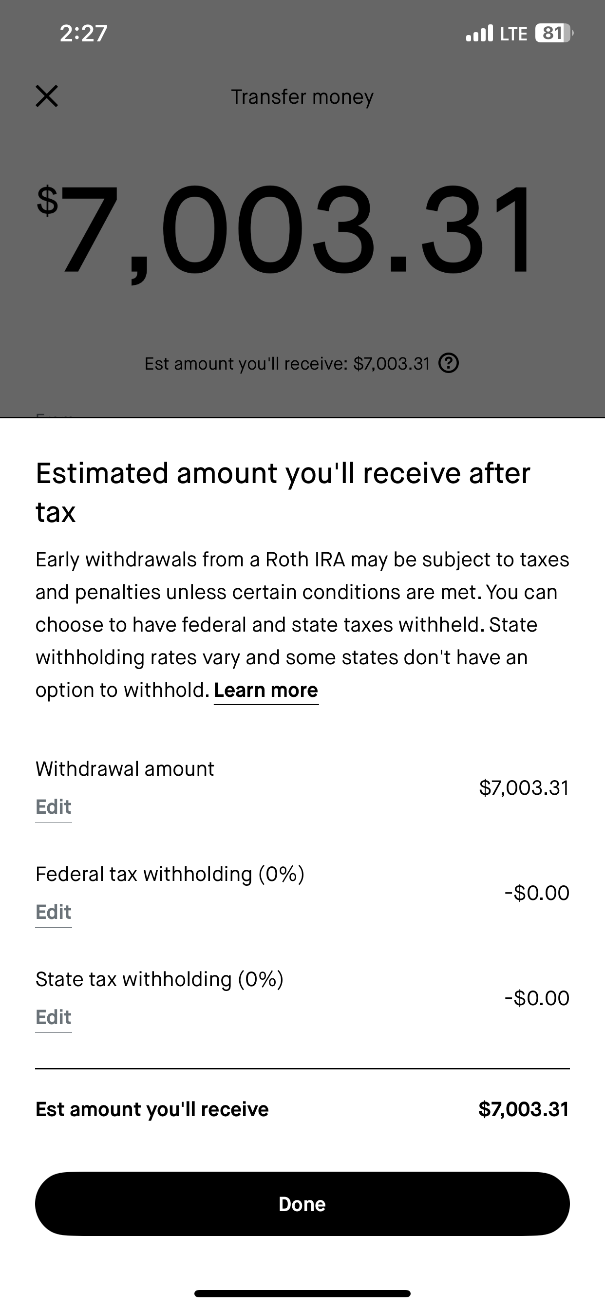 小弟对税务问题一窍不通,特地前来求助。之前为了Robinhood 3%的match开了Roth IRA,但没想到是managed…只有开Self-directed才可以拿到3%。无语啊啊啊,现在regular IRA那边显示没有额度可存,然后managed这边$7000存满我现在想跑路了。点withdraw发现有税务问题啊啊啊,特来求助大家我该如何操作,谢谢大家!