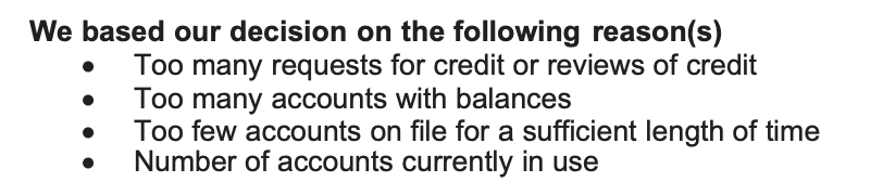 写的 too many recent open accounts