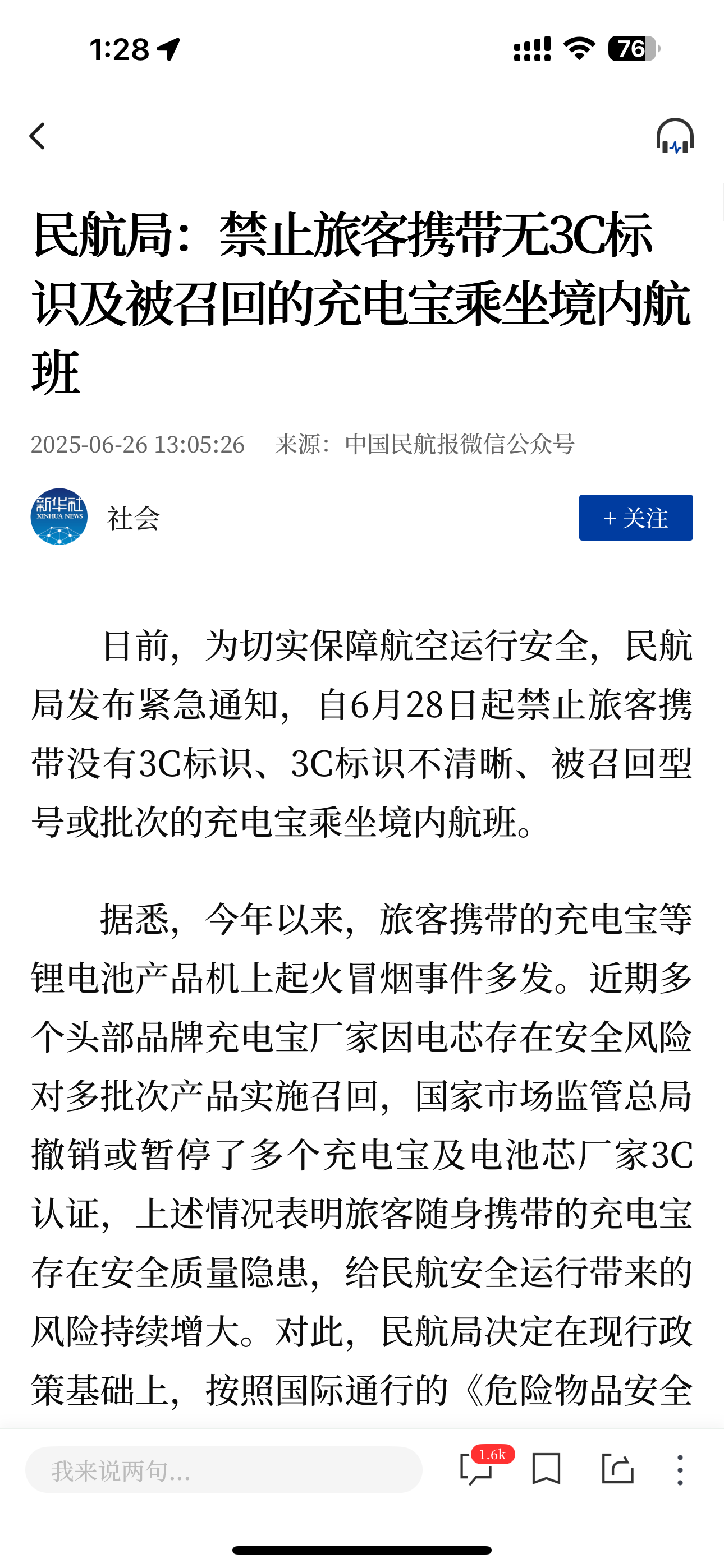 我怎么感觉是政策往下传的过程传歪了。上面本来想说“被暂停3C认证的不许带”(aka用了问题电芯容易炸的那一批不许带,3C认证已经void了),实践起来变成看3C认证贴纸。