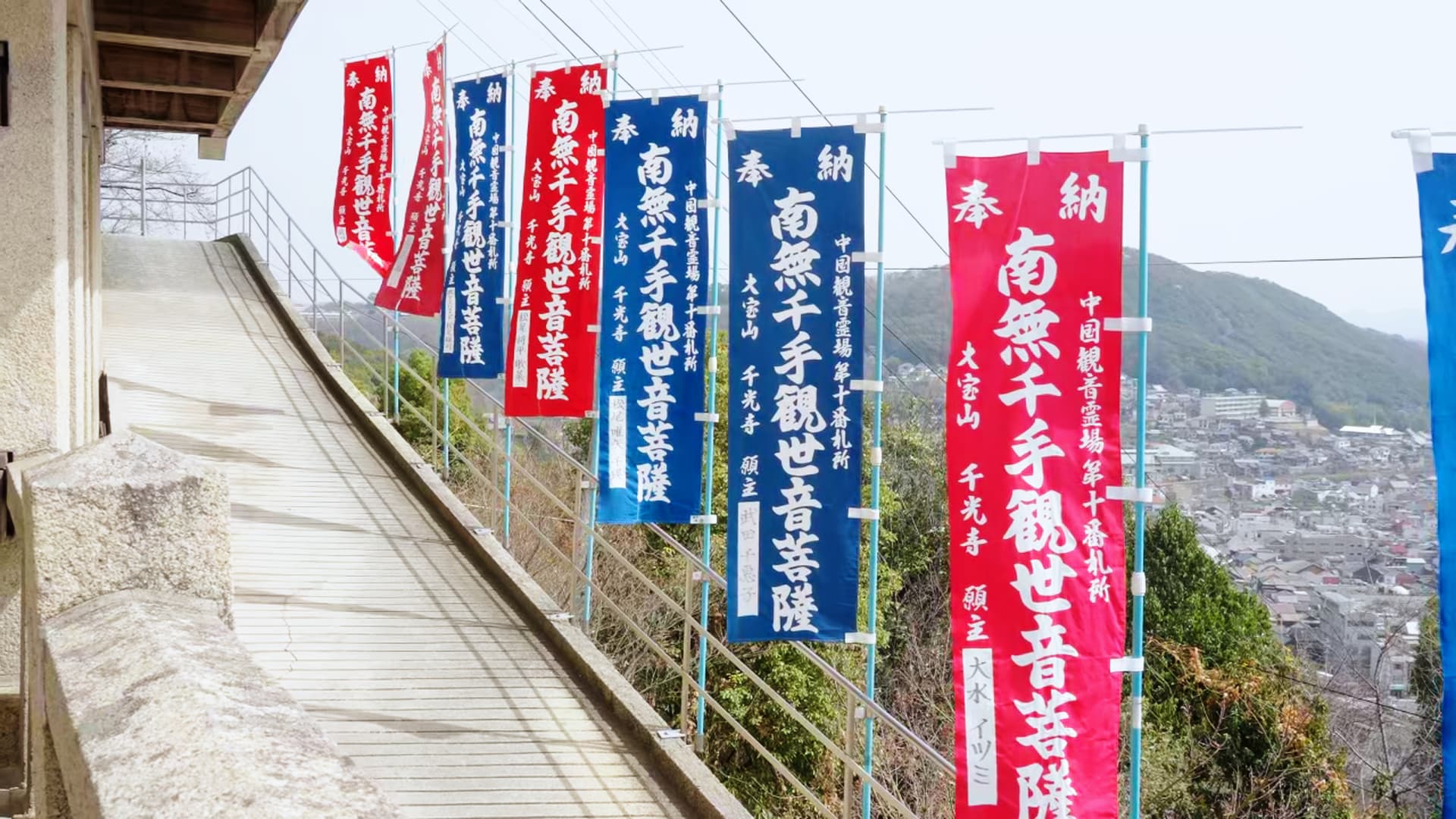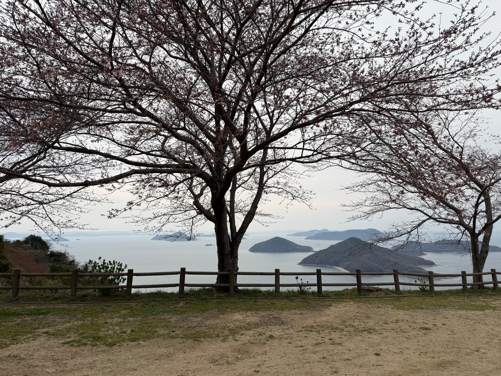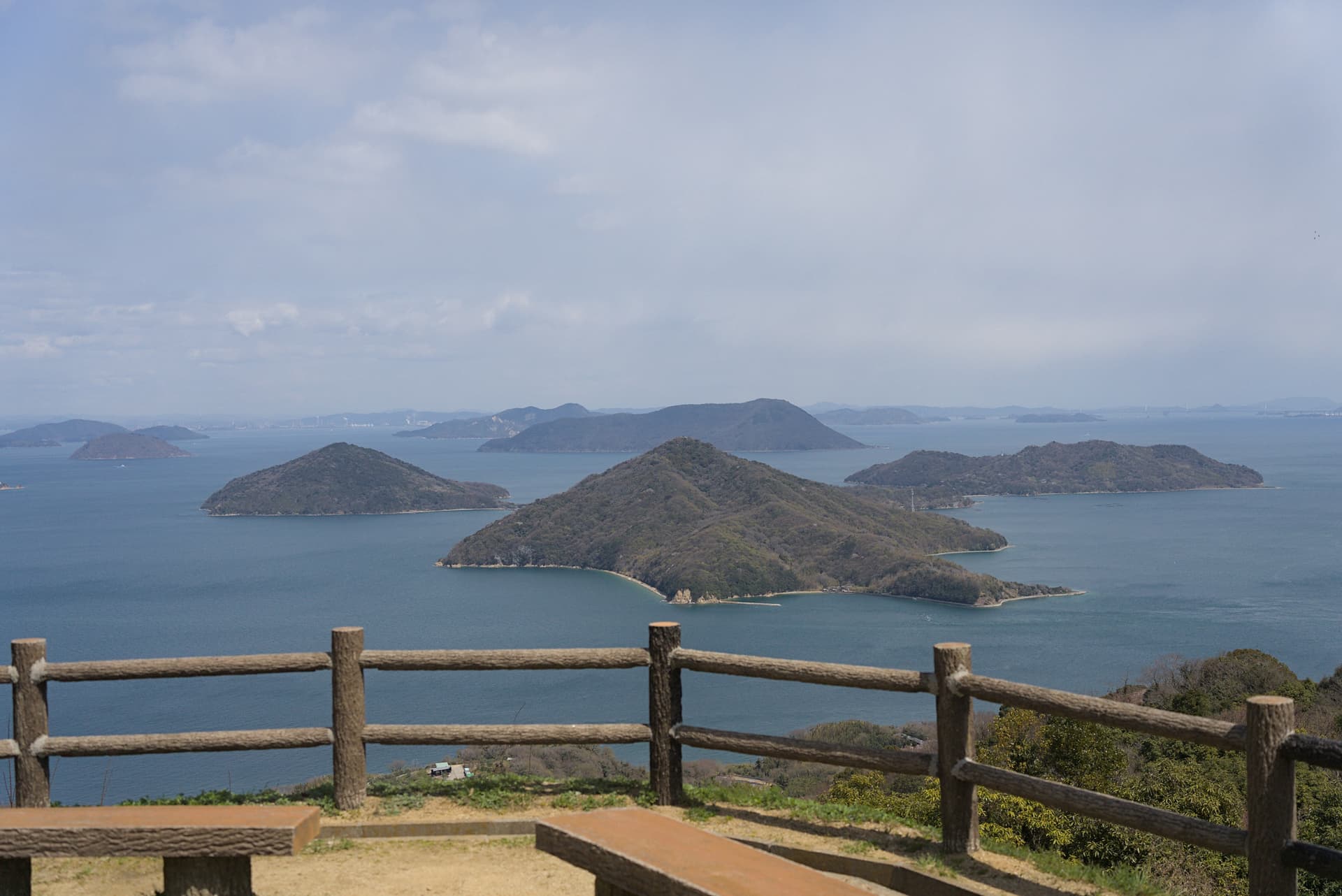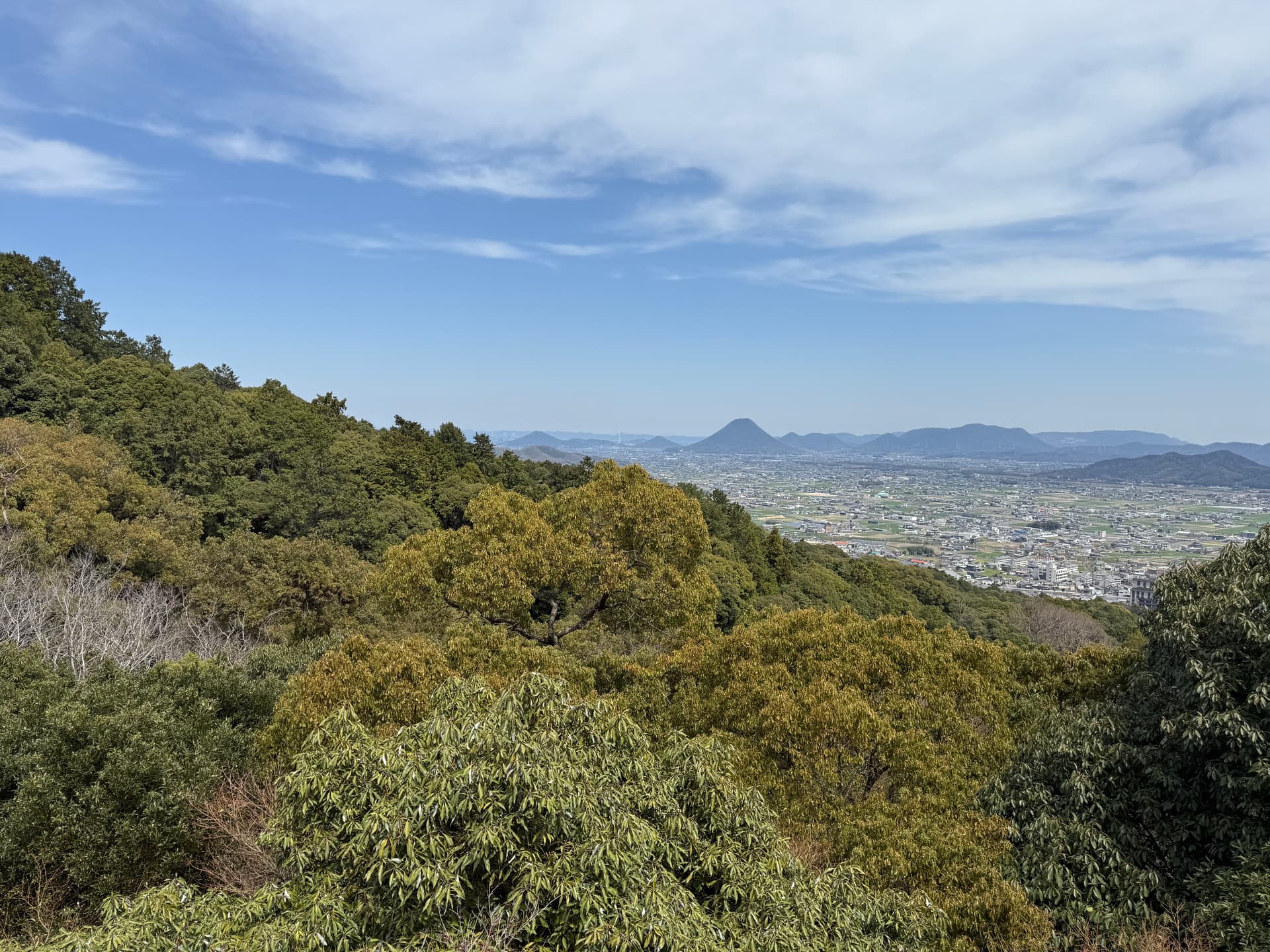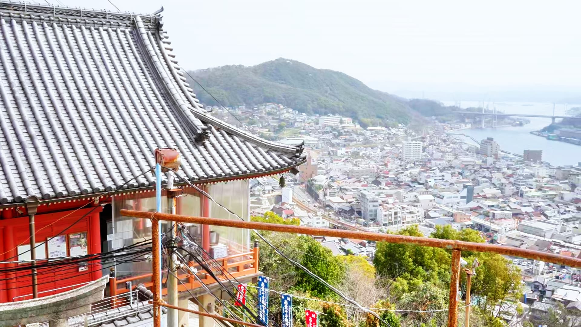 旁边的观景台视野很开阔。远处可以依稀看到香川县的“小富士山”