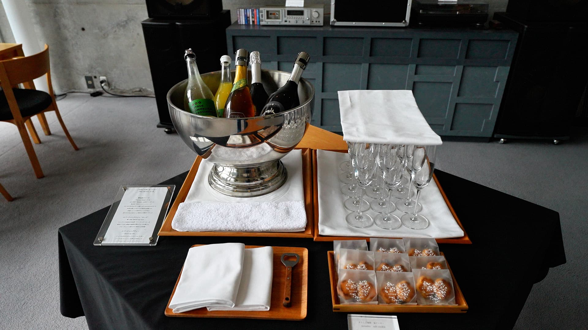 泡完温泉,我们决定在晚餐前到处逛逛。先去了下面的lounge喝了些餐前酒。香槟和橙汁很好喝。唱片机里放上一盘爵士乐,那感觉一下就对了。