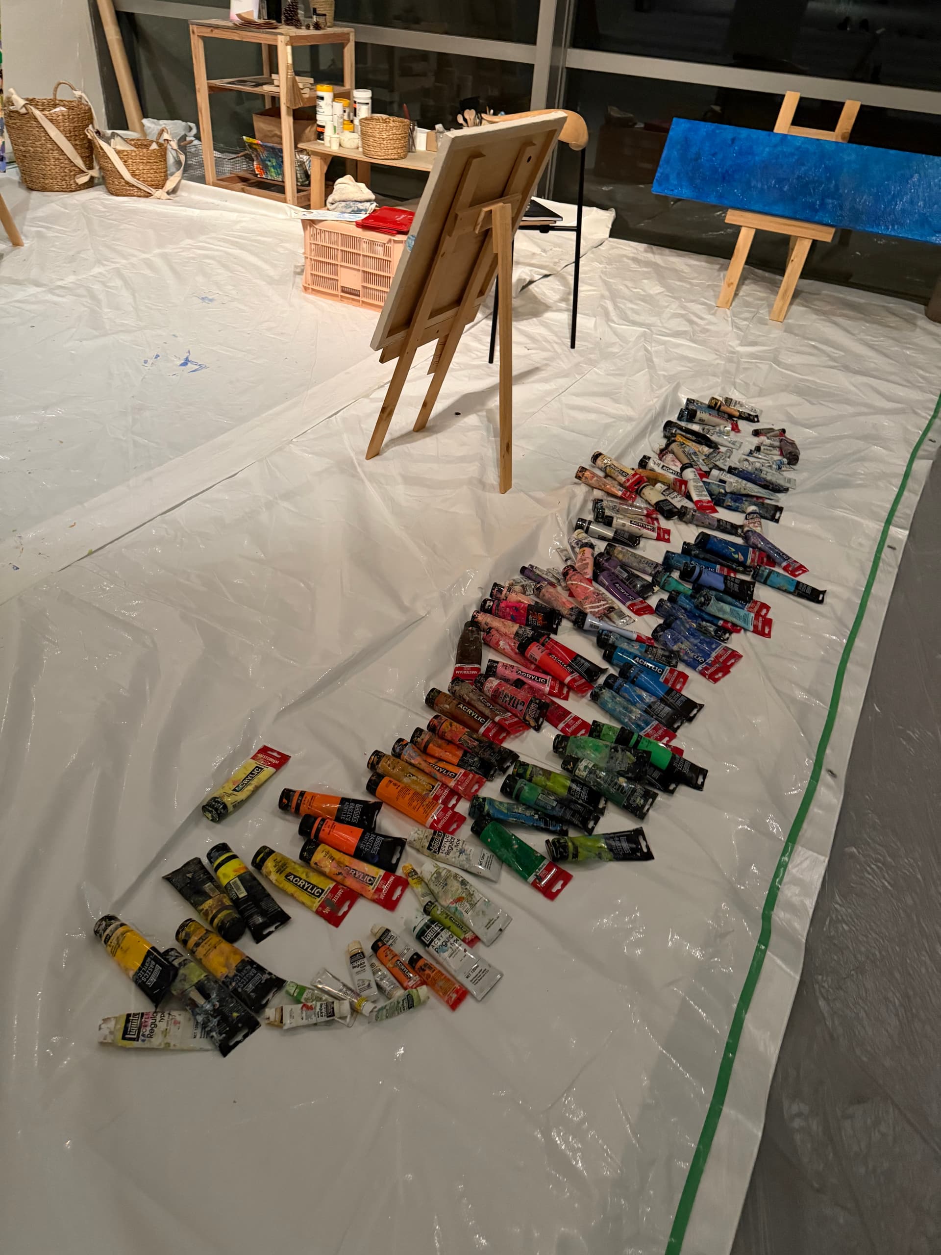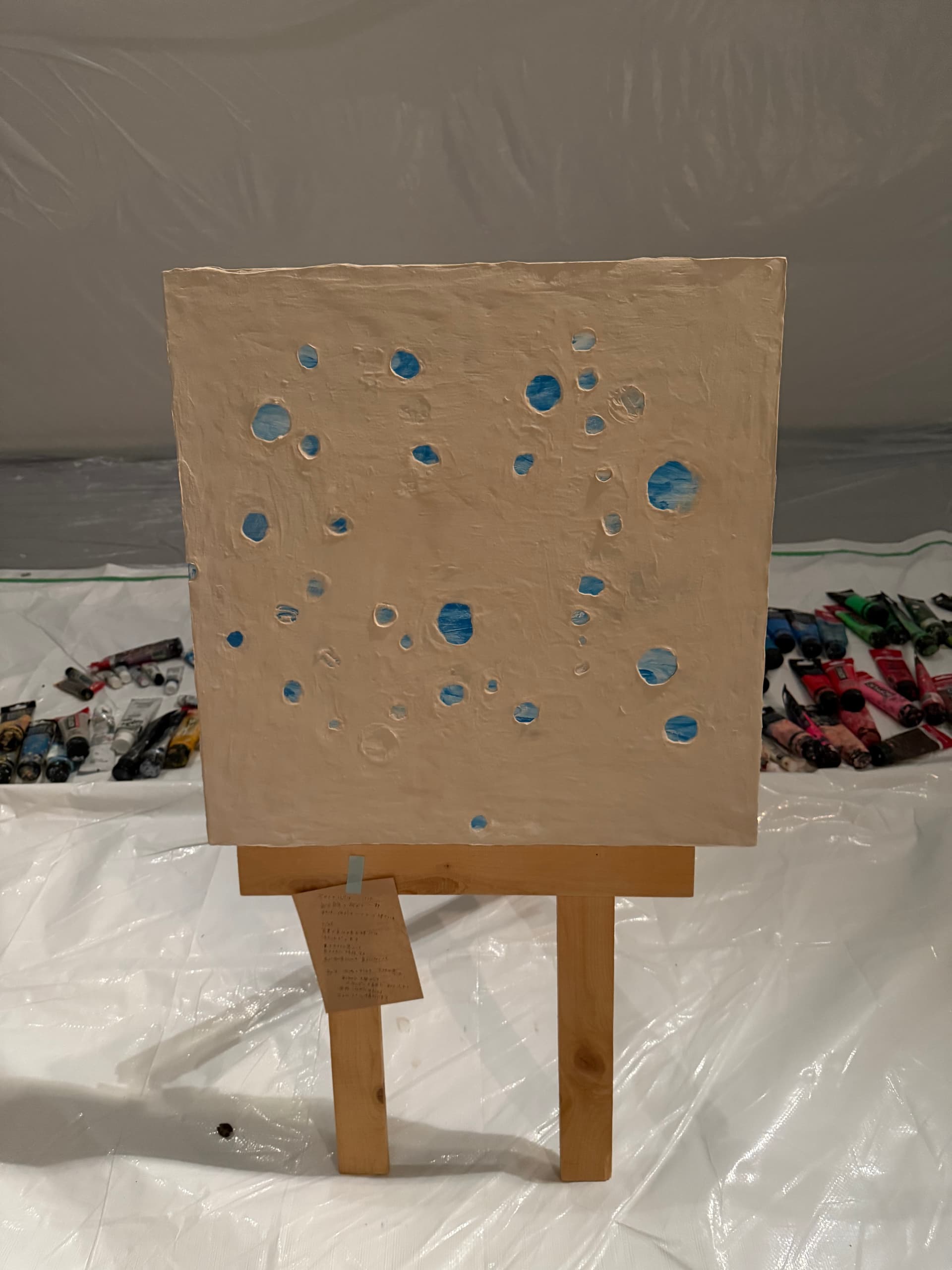 入住当天还赶上艺术家现场创作。不过我们checkin的时候人家已经下班了,不过创作现场可以随意参观和留言,不过I人还是pass了。场地内散落着未完成的作品。在酒店里欣赏艺术还是第一次。