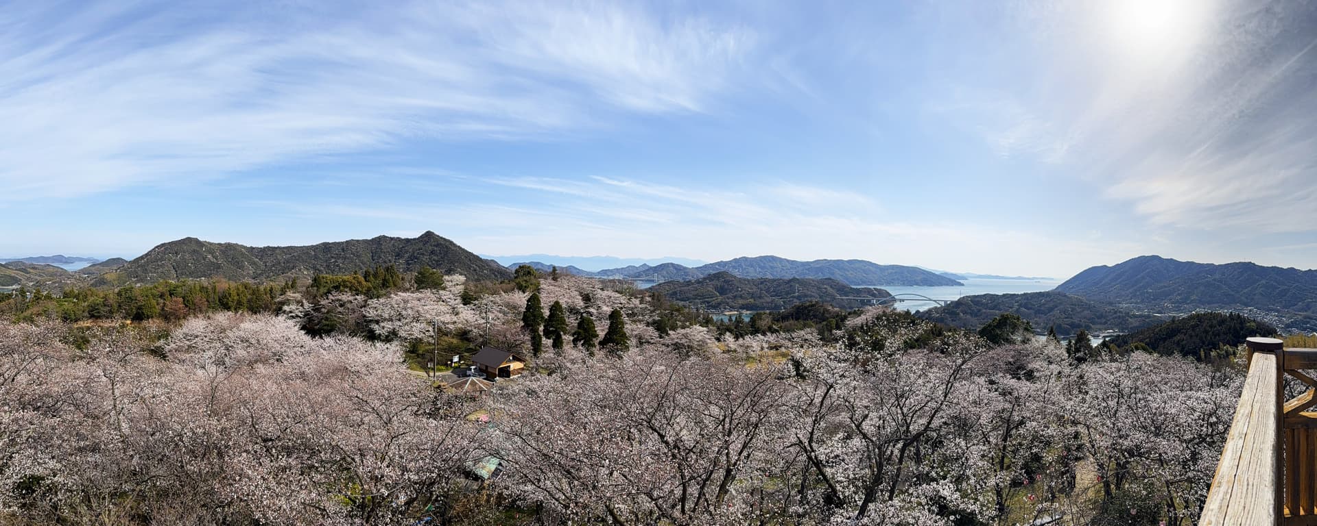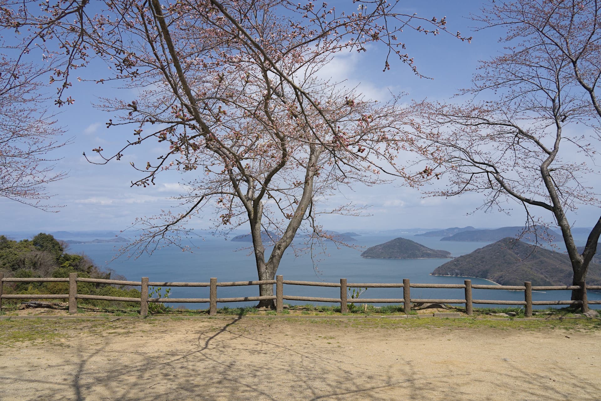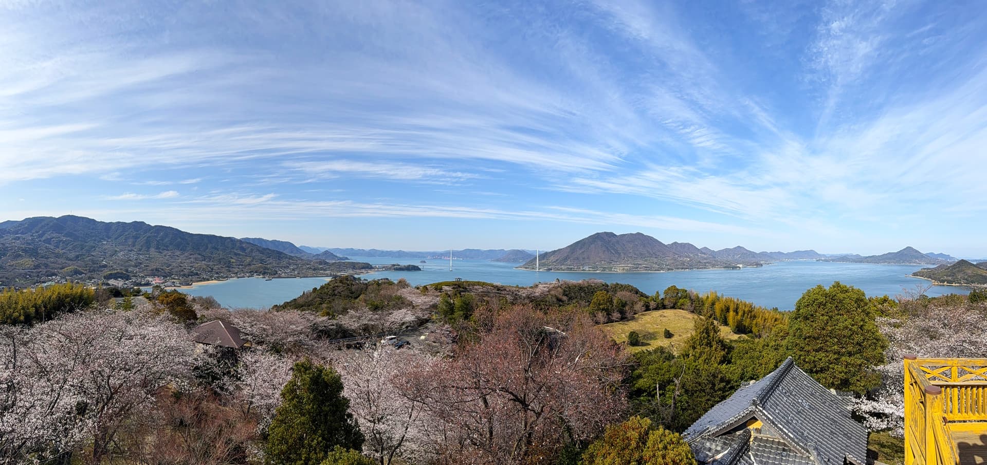 观景台的上的景色。山,海,樱花一应俱全。