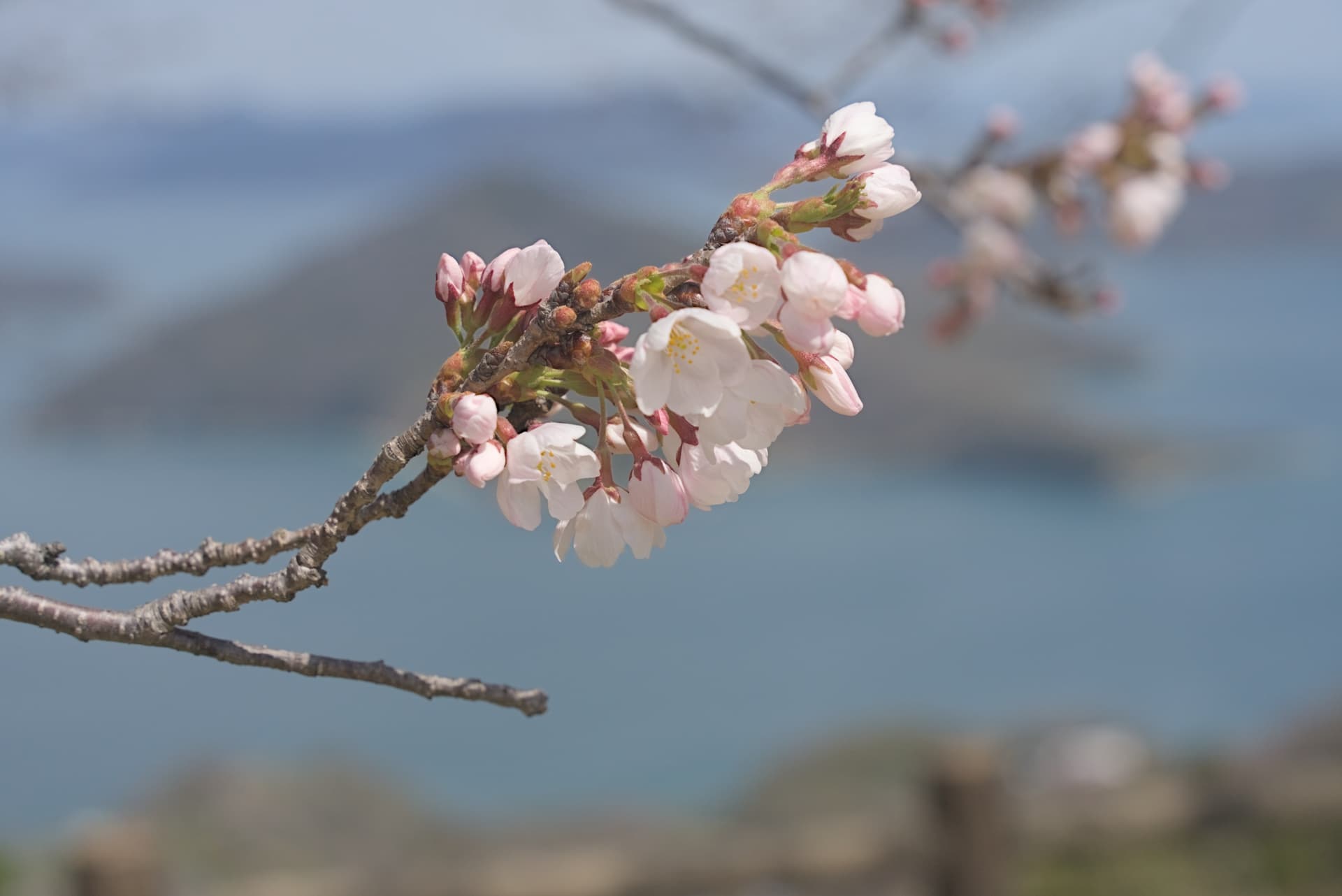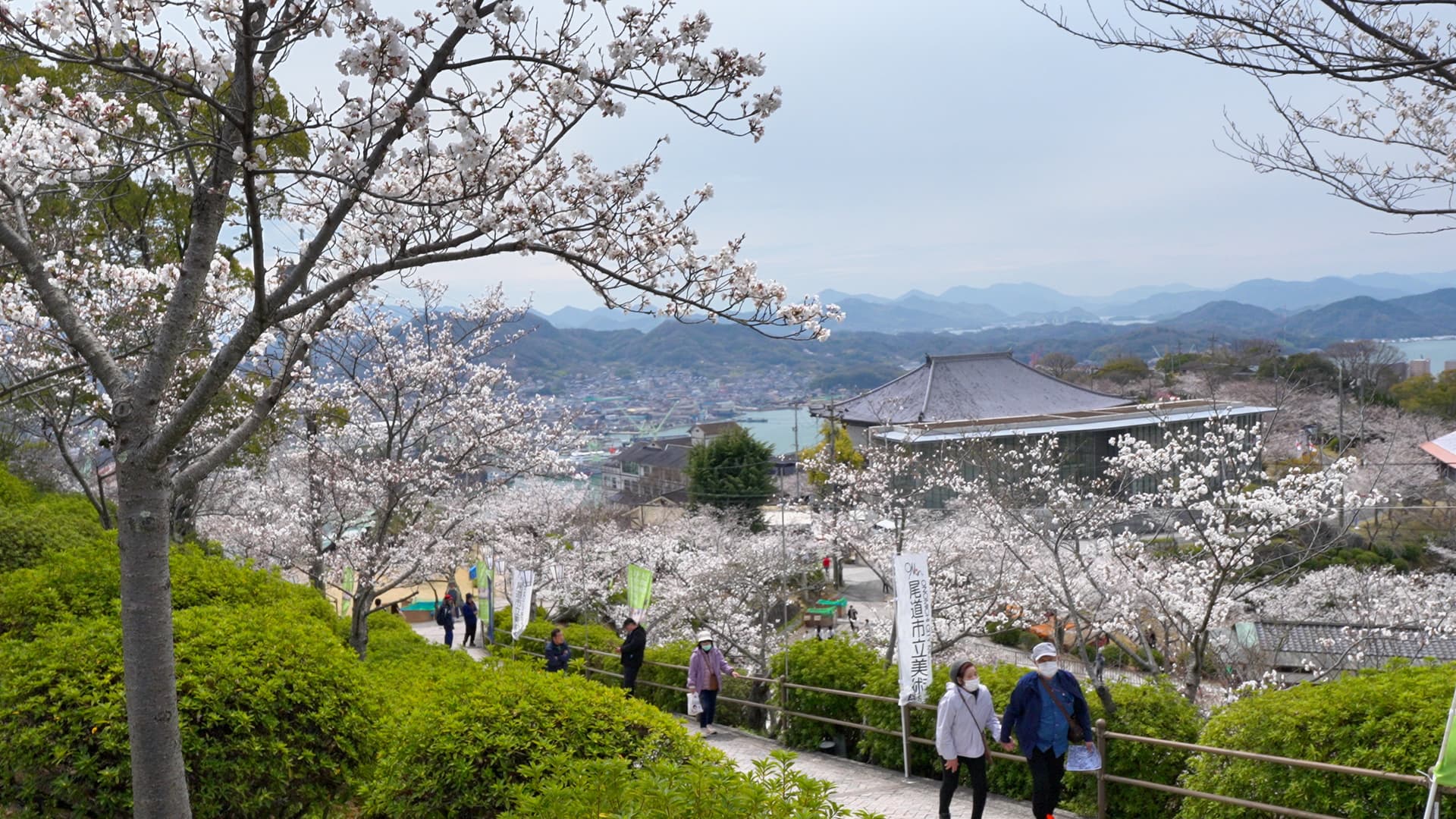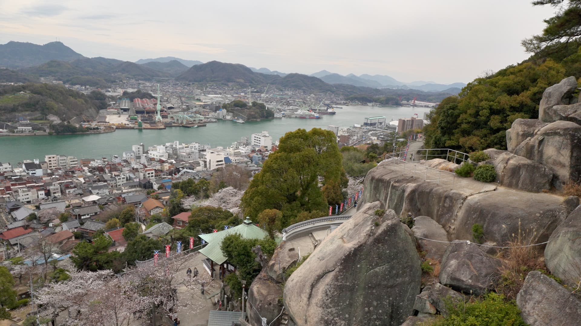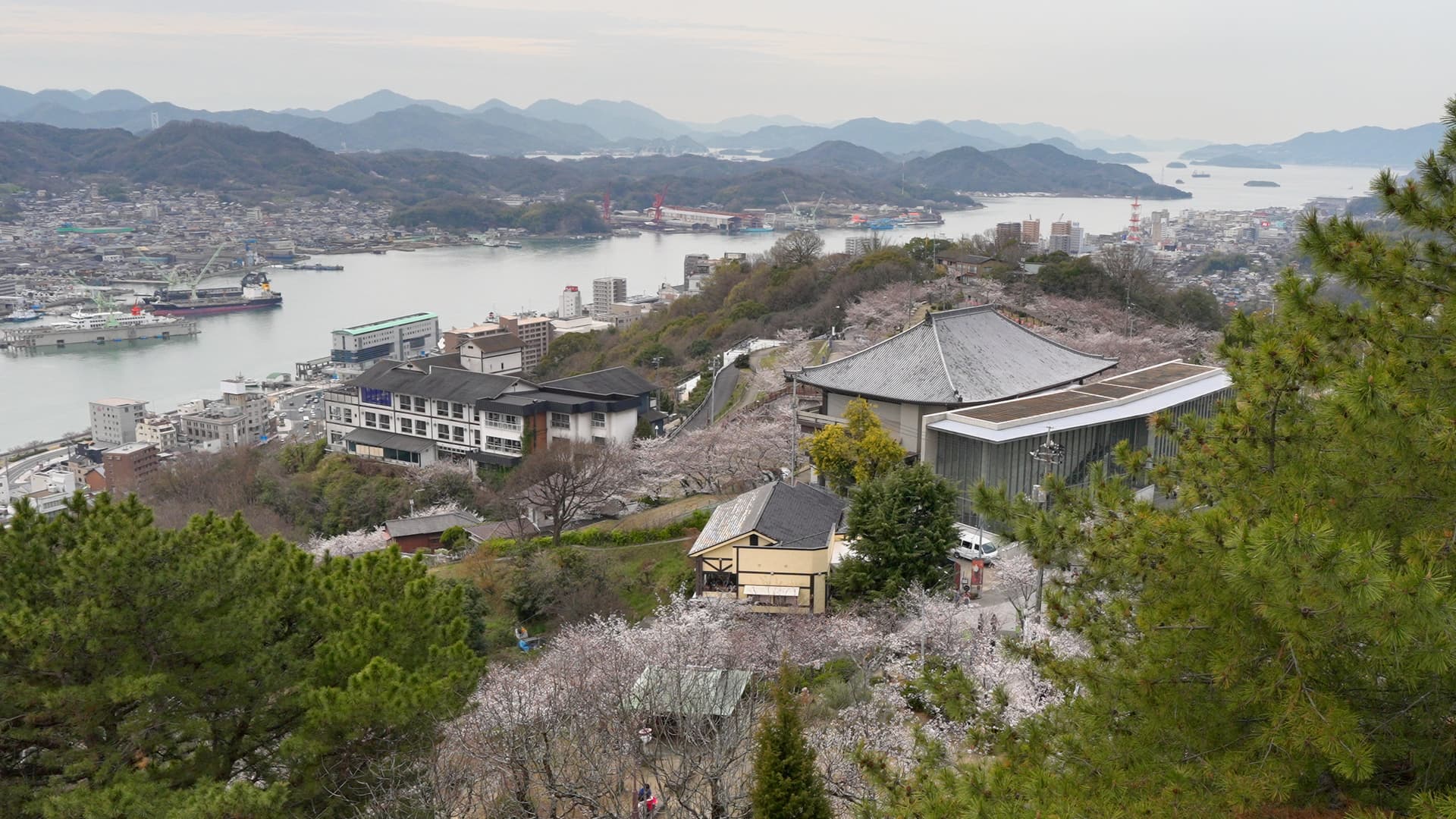 观景台的上的景色。山,海,樱花一应俱全。