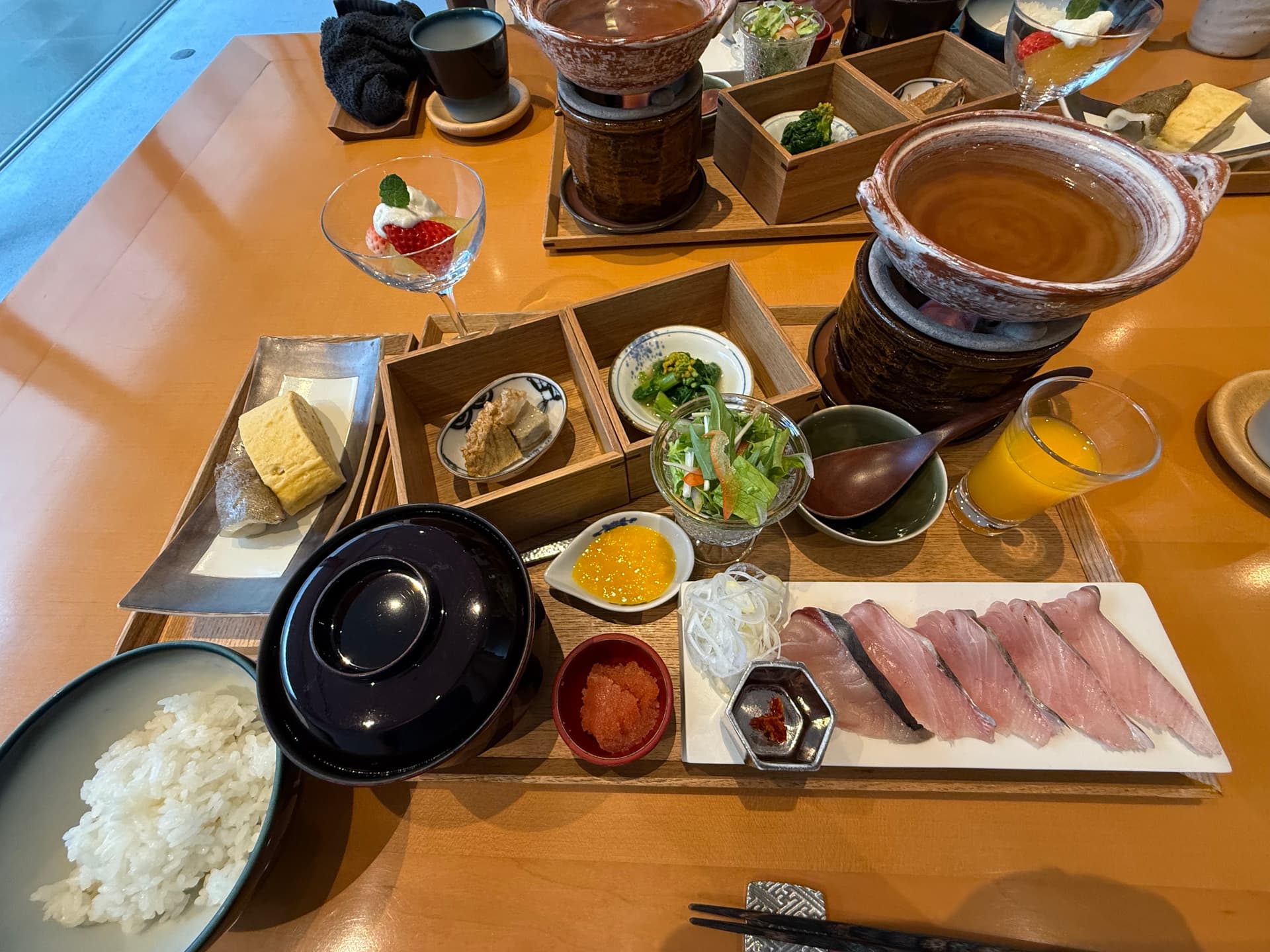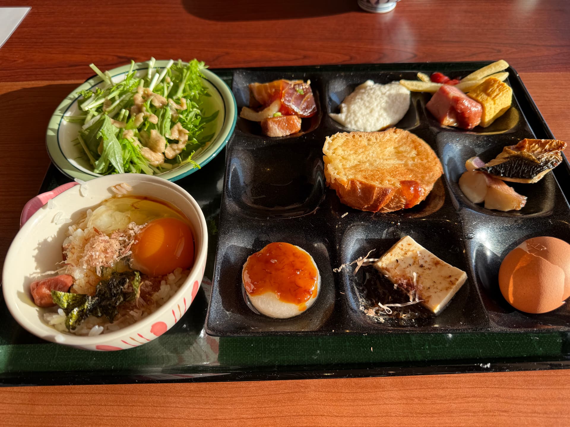 早上起来泡过大浴场就去吃早餐。这家的早餐自助非常惊艳。食物样式多而且新鲜好吃。和食和洋食种类都很多。