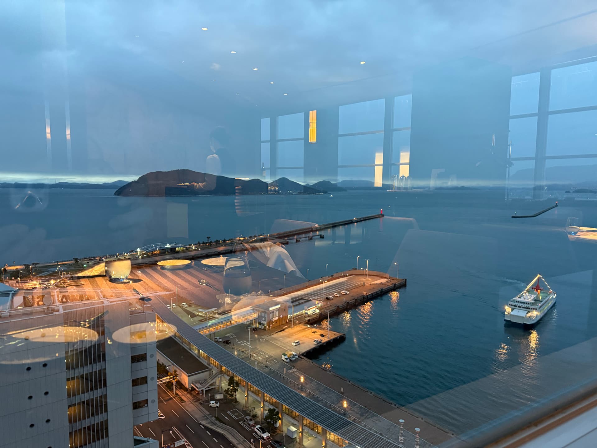今晚入住高松站的JR Clemente Hotel。高松别看他村,酒店价格并不便宜。周五的1 king竟然要250刀一晚。不过酒店的海景还可以。