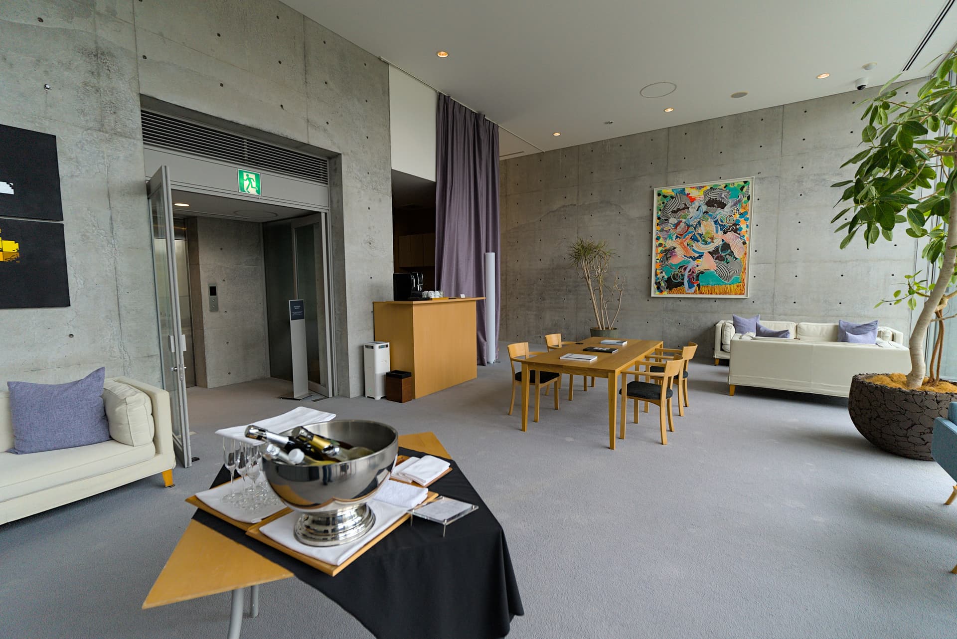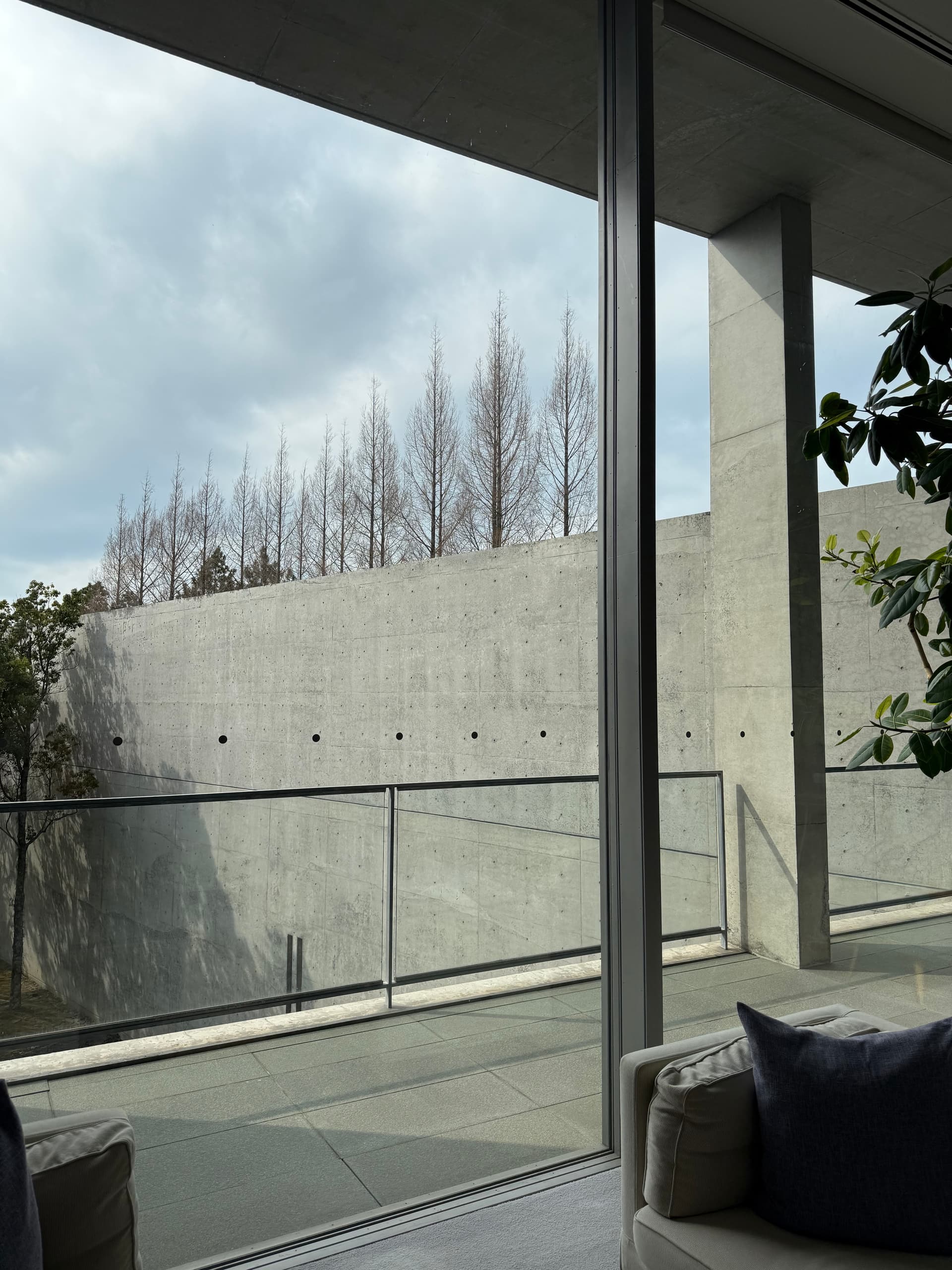 一进门就是一面安藤最爱的巨大水泥墙。从门口到check-in休息室有段距离,一路上都是各种艺术品。部分图片为补拍。