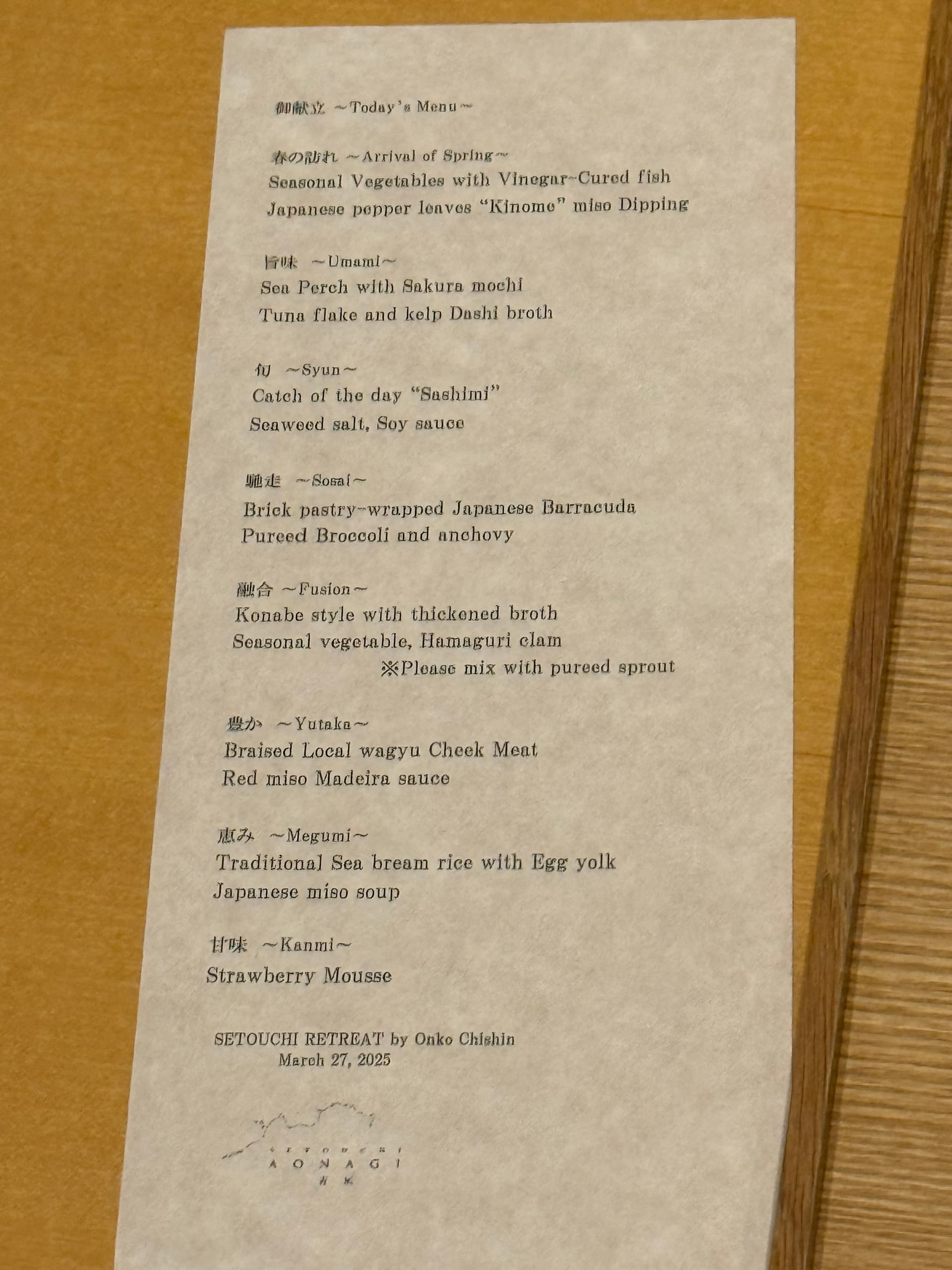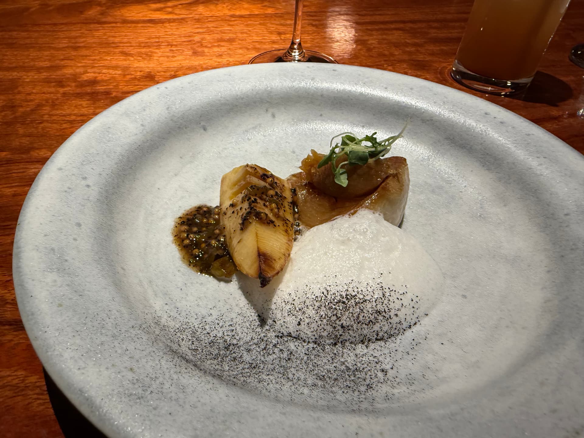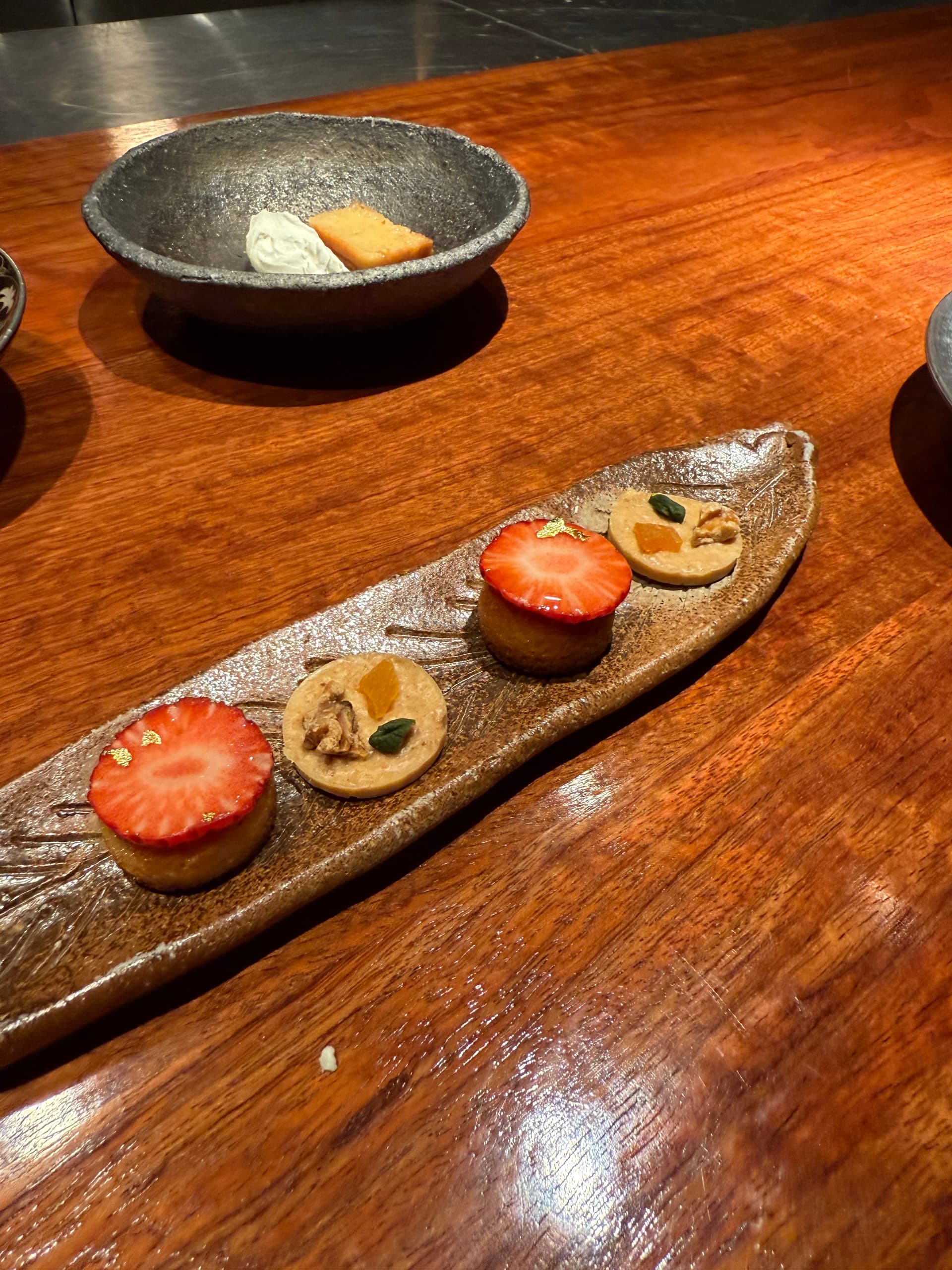 当地新鲜蔬菜配上味增系的酱汁和鹅肝酱。好吃。