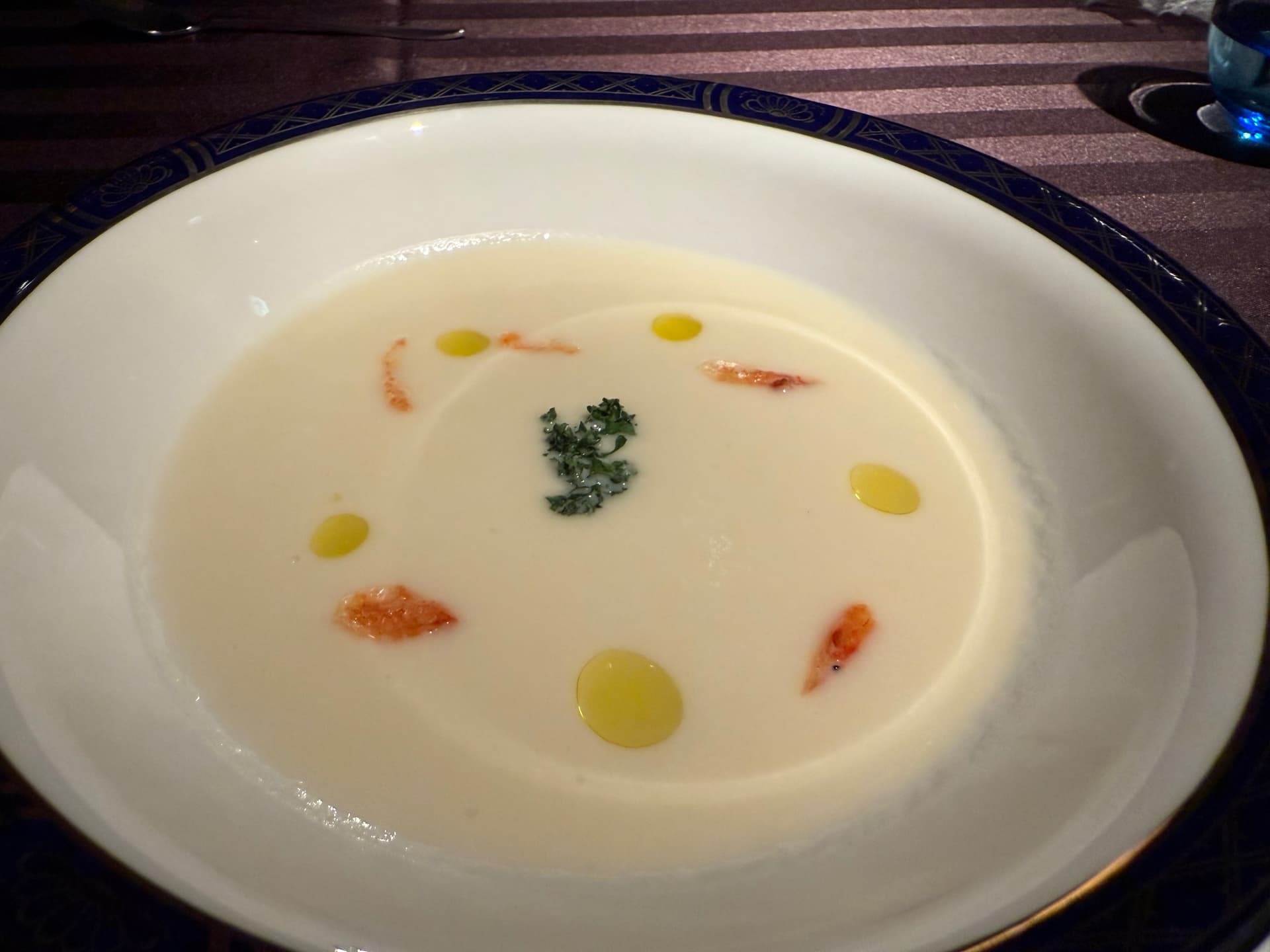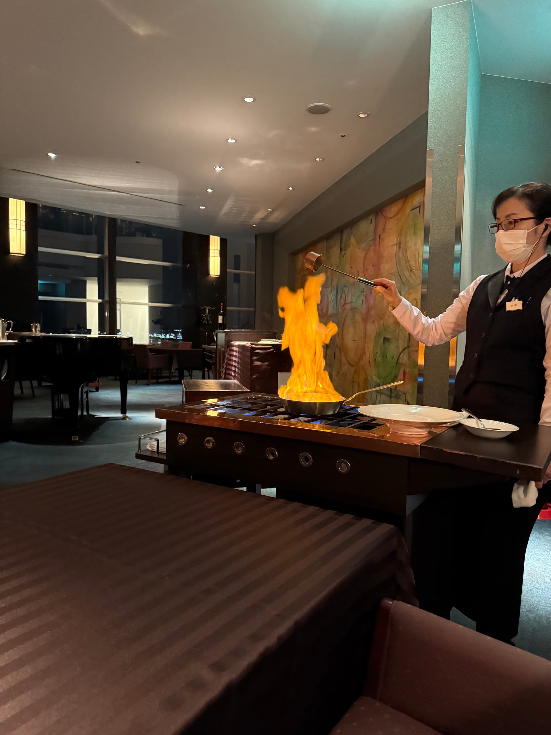 因为到的比较晚,加上玩的很累,所以直接就近去了酒店顶楼的法餐厅吃饭。风景你别说还不错。点了人均1W的套餐。食物味道只能说是寡淡,不难吃也不好吃啊,和前一天比差距有点大。dessert倒是味道不错。吃的基本就是个氛围,建议直接点最便宜套餐就行,午餐性价比更高。