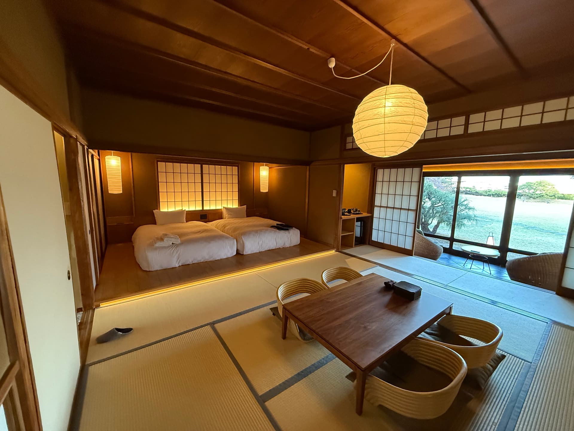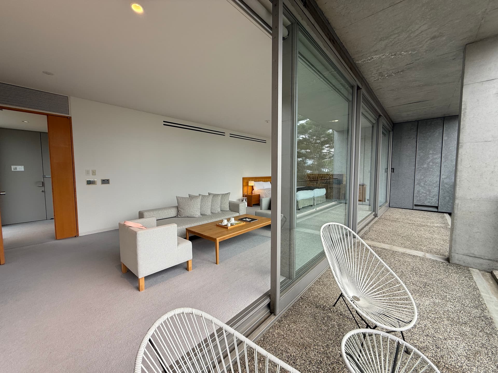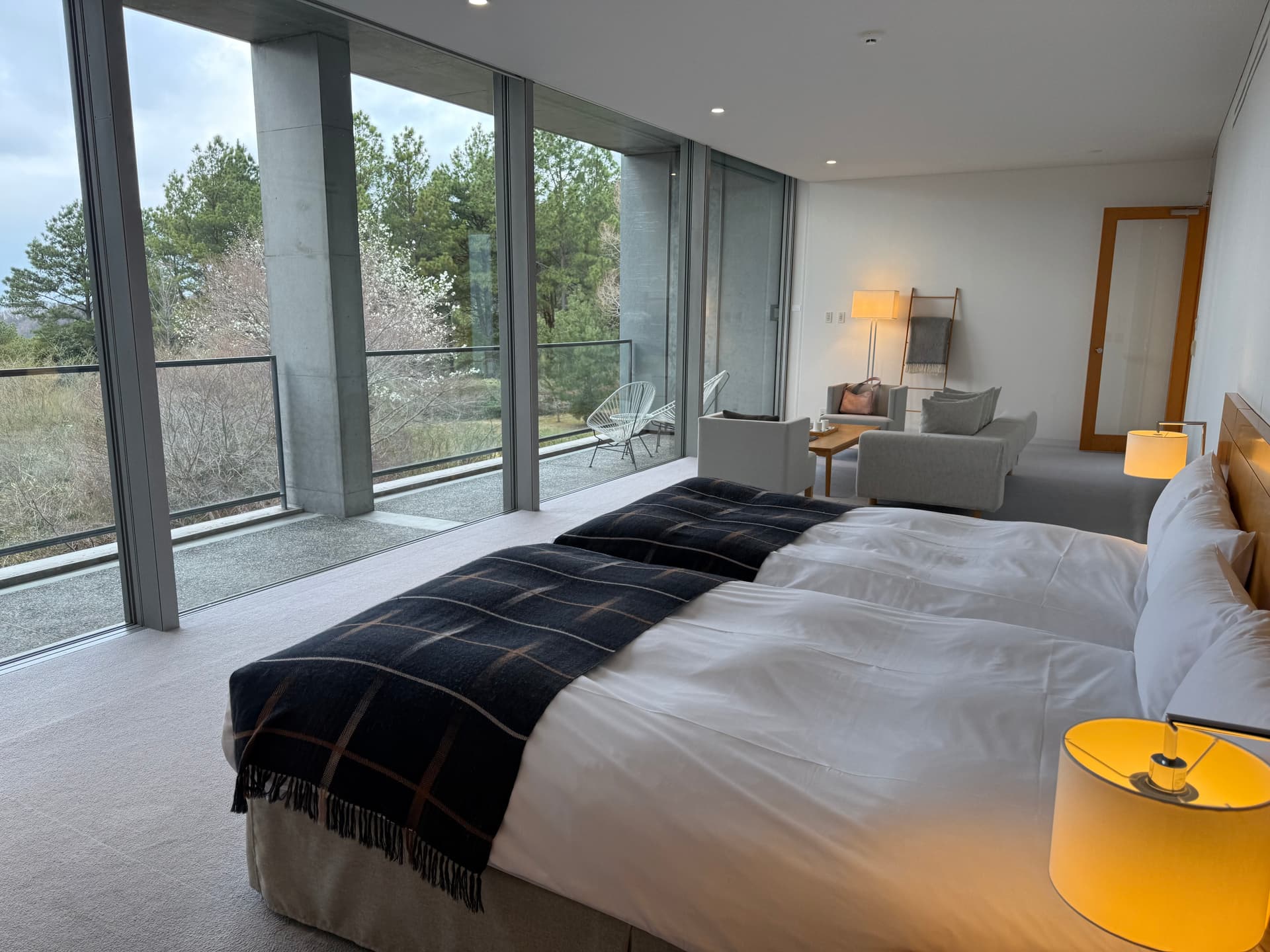 酒店只有7间suite。这次入住的房型是半露天温泉suite。106平的大小感觉可以跑步。超大落地窗空间感max,每扇窗户目测都要200,300磅重,必须用电动开关。