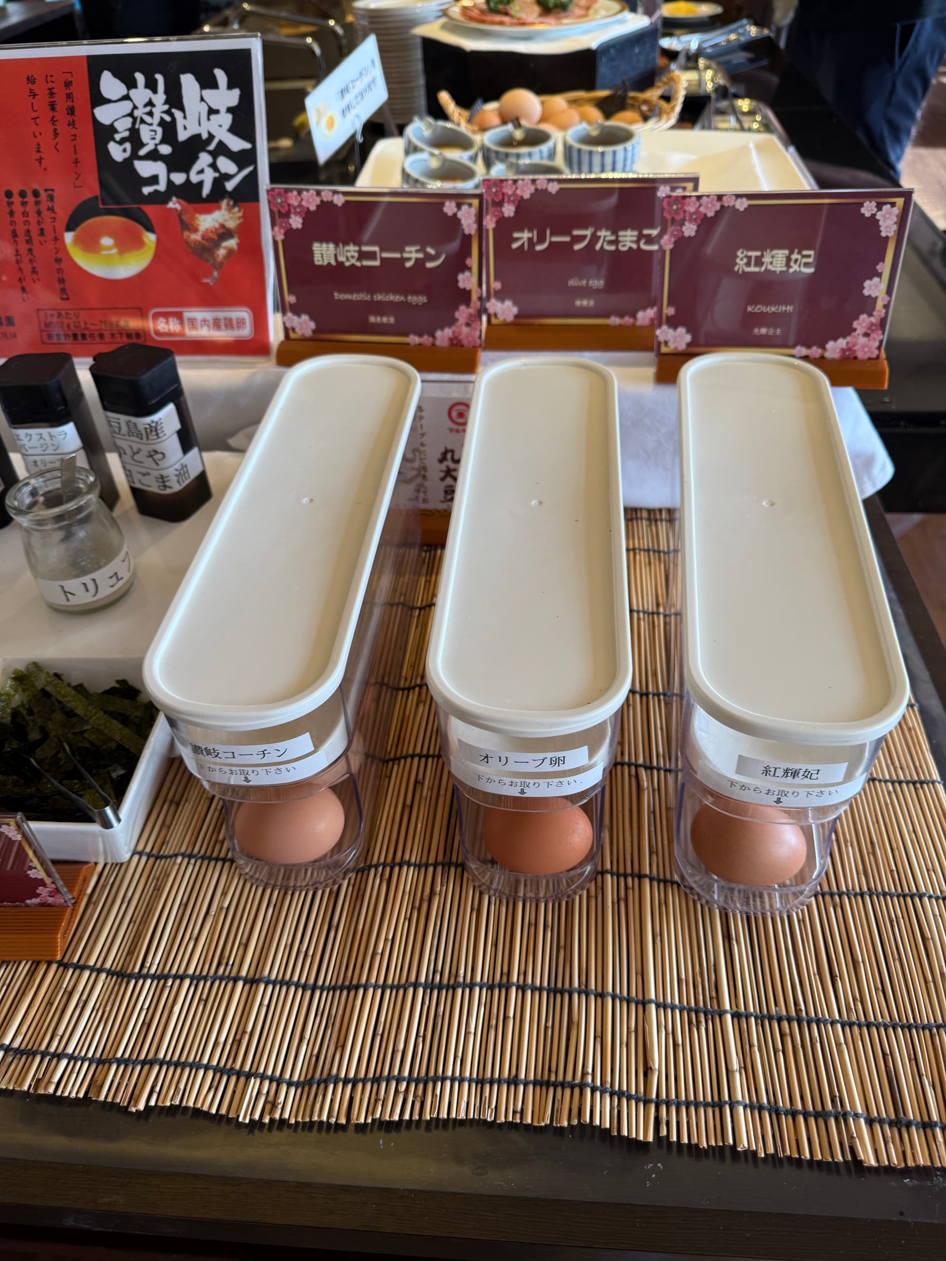 当地特产的三种鸡蛋。一口气吃了3小碗生鸡蛋盖饭。三种蛋的味道都不一样,有的更醇厚,有的更甜,而且都没有腥味。非常下饭。