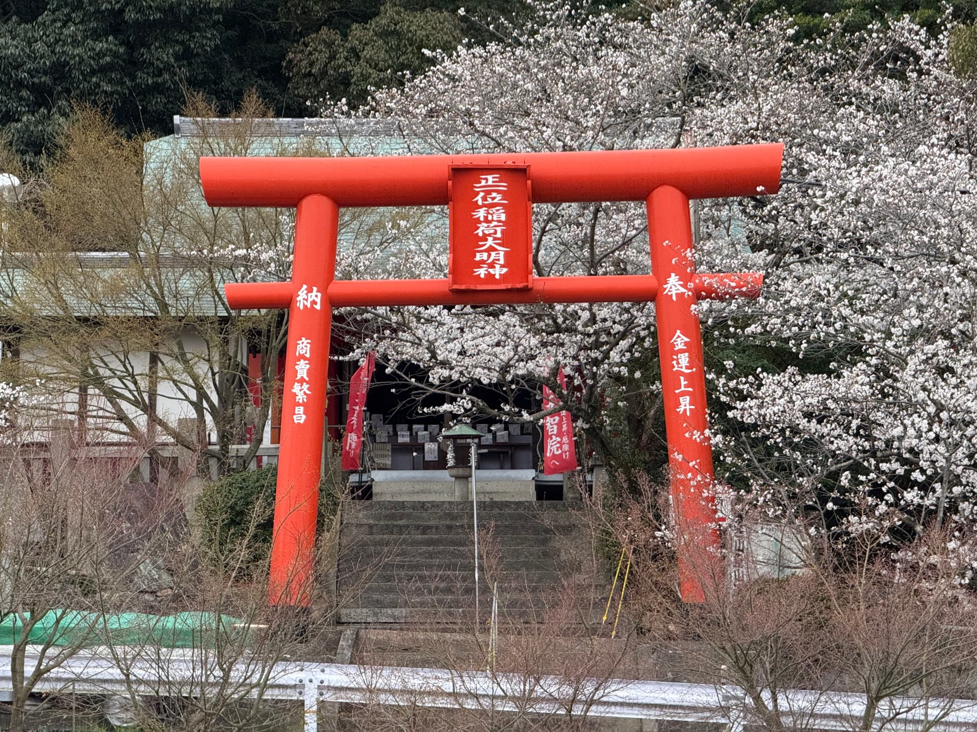 停车场对面的稻荷神社门口的樱花开的不错。