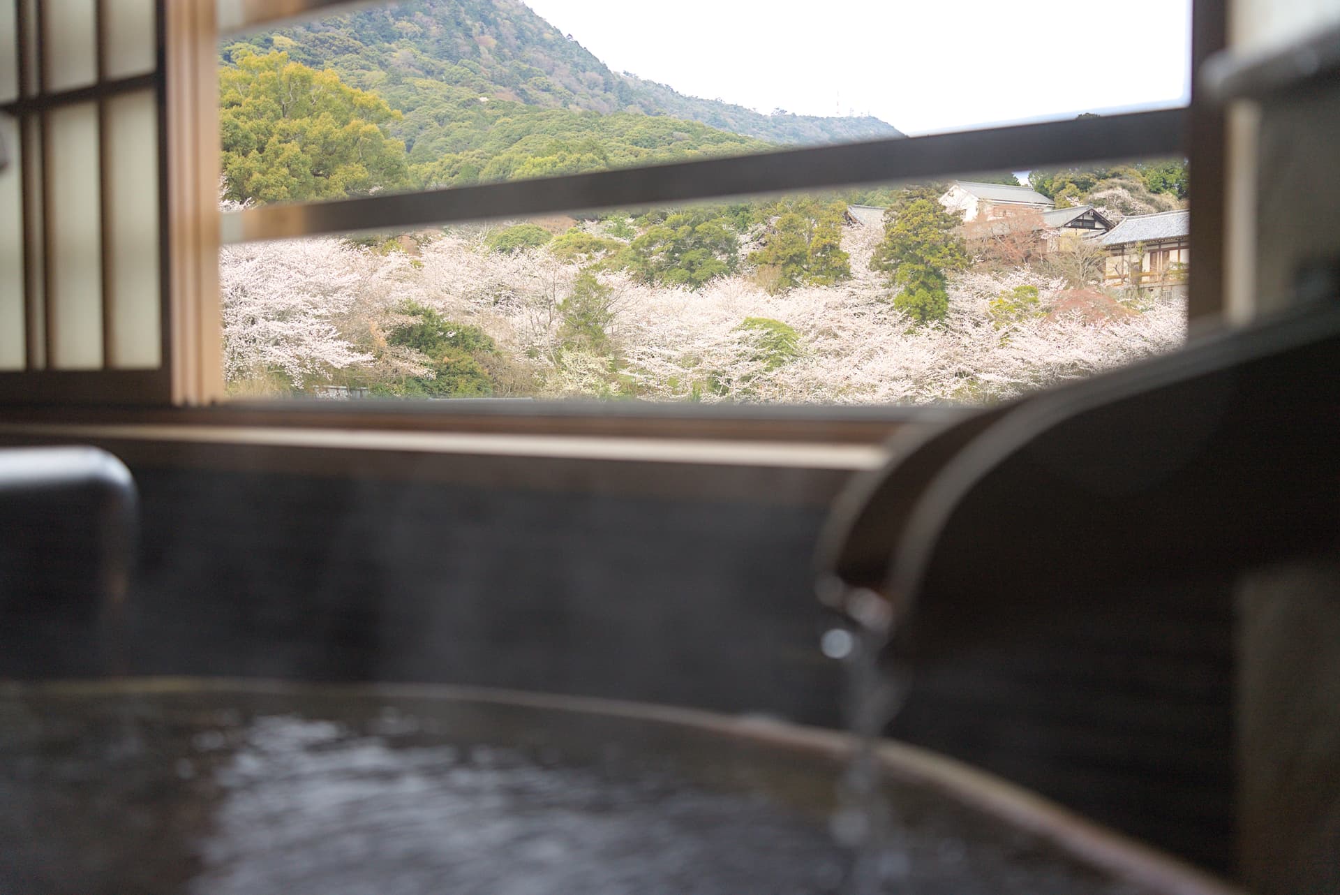 浴室窗外的景色也绝了,把窗户打开就是半露天风吕。