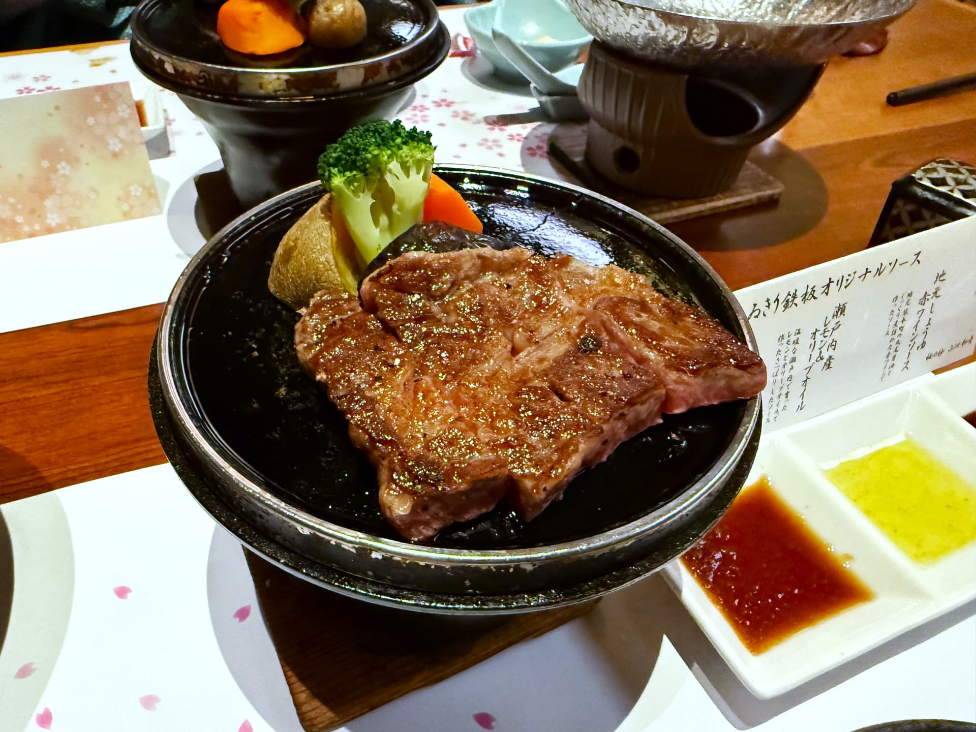 晚餐中规中矩的好吃。标准的温泉旅馆漂亮饭。没有太多名贵食材,甜点略微粗糙,但和牛给的不少。