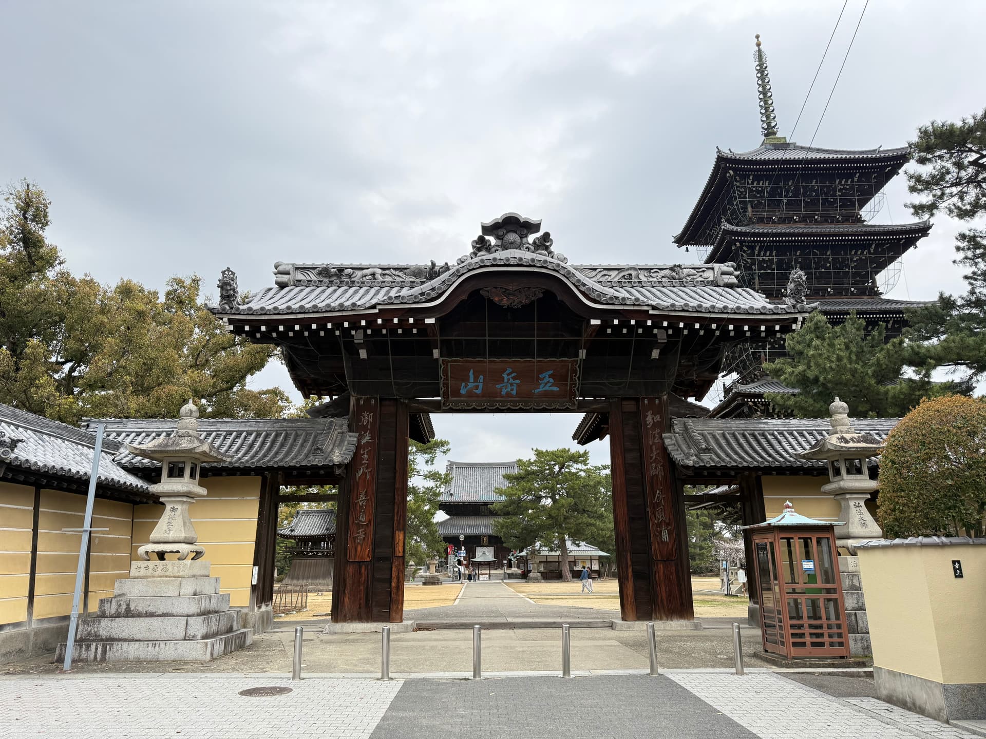 善通寺是日本真言宗善通寺派的本寺。宗祖是去过唐朝取经的空海大师,供奉的本尊则是药师如来。正门和高塔都很气派。卖的御守全部都是健康相关。