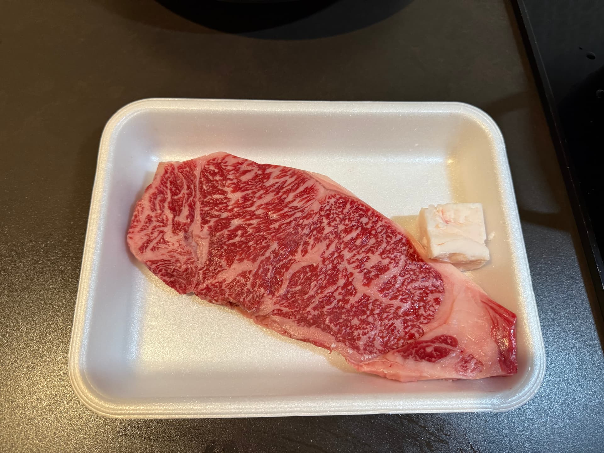 来酒店的路上我们还顺路在肉店买了和牛加餐。下面这块200克的ribeye,只要3000日元不到。