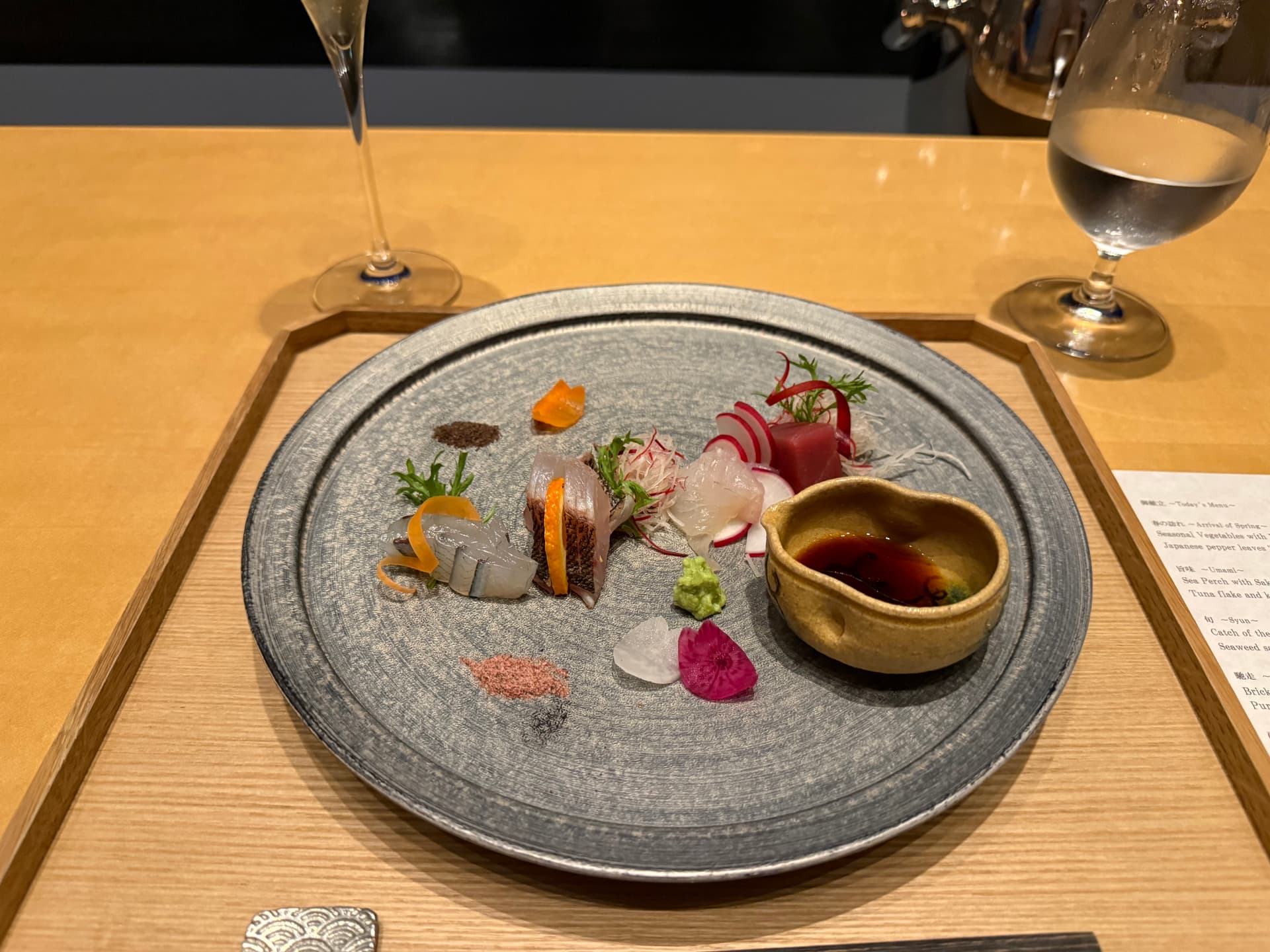 第一道菜我给他起名日法融合蘸酱菜。