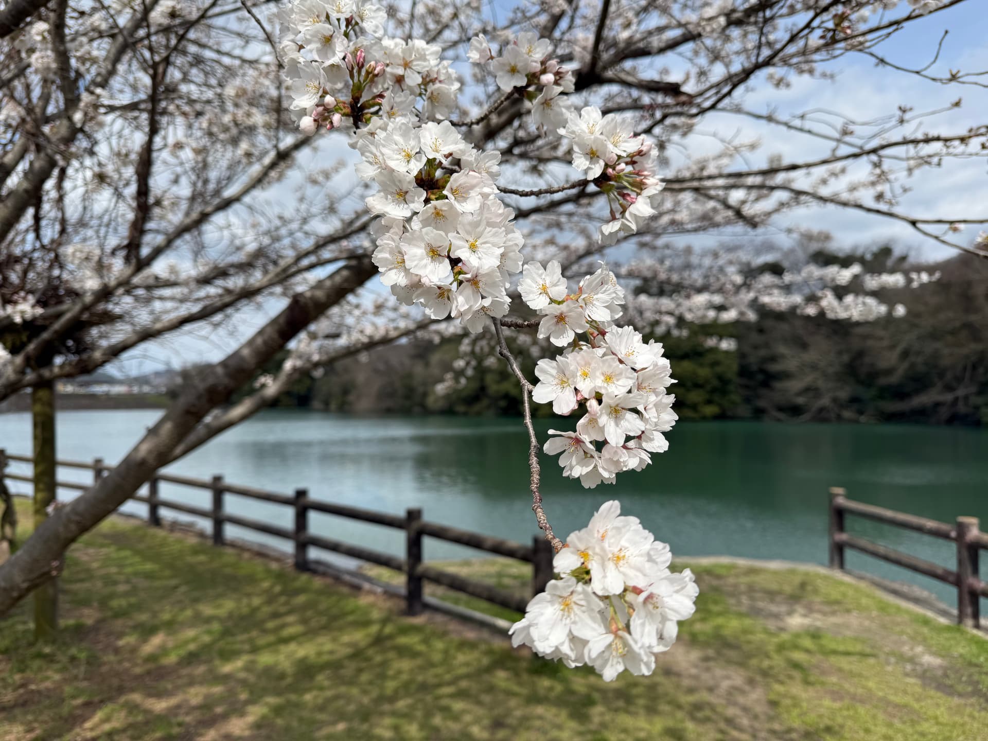 这是我这次旅行遇到的唯二的樱花满开。湖边漫山遍野的樱花很不错。这里只有自驾才能到,隔壁就是一个休息站。第一次把樱花看了个爽。