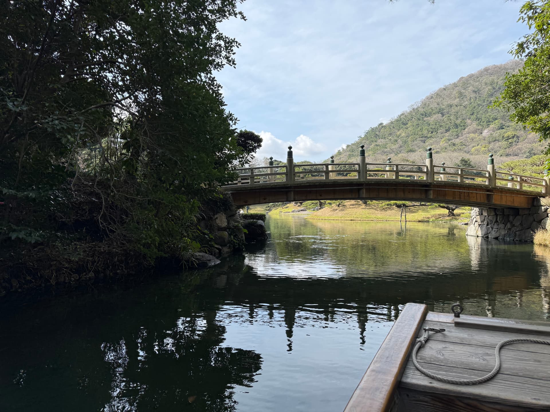 今天第一站是高松市内的栗林公園。强烈推荐坐园内的游船,大概需要40分钟,船夫会带着游客在公园内的南湖游览,使用的是日式传统的木船。建议9点开门就来抢票,票很容易就卖没。