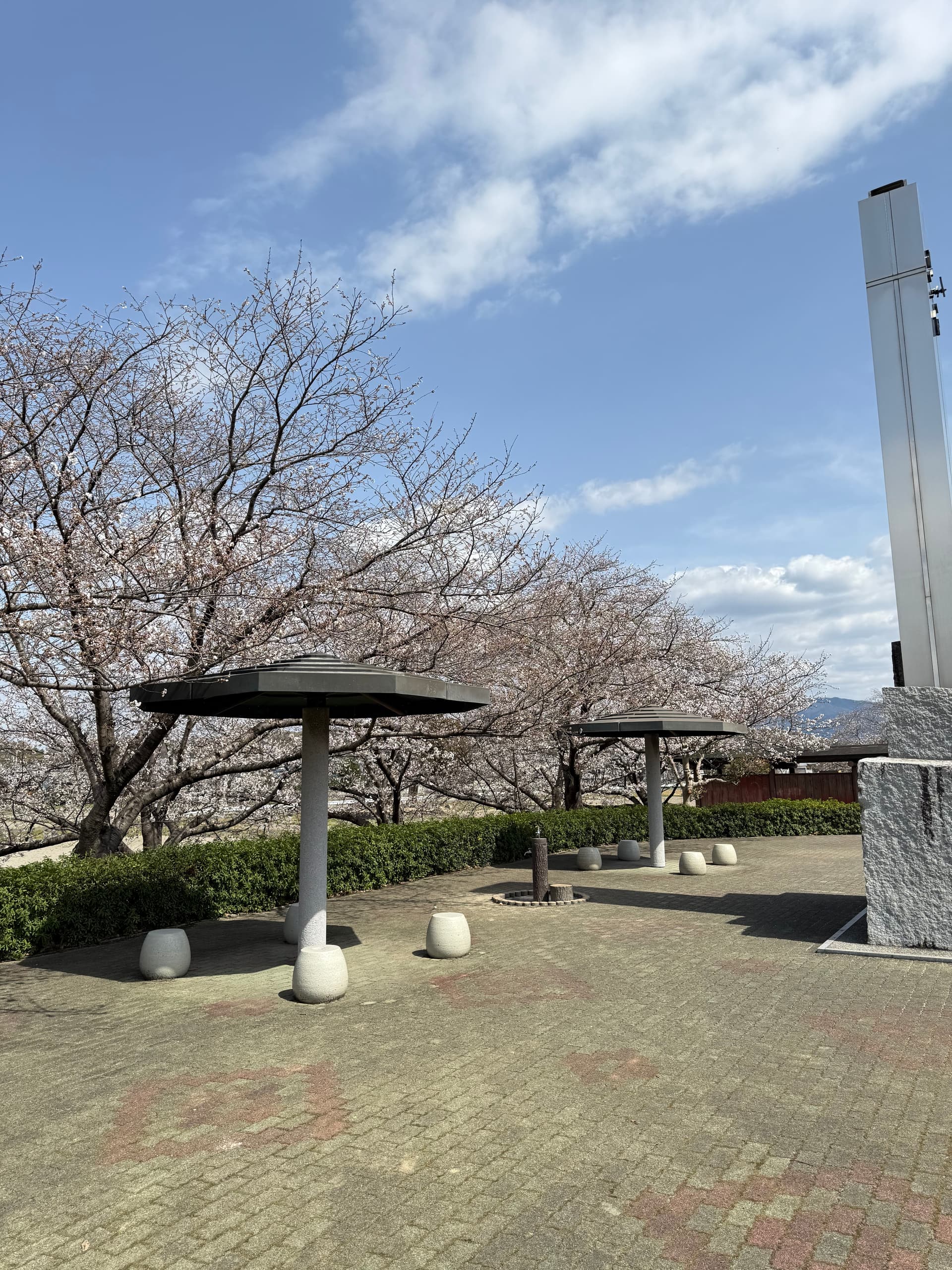 高屋神社下山路线上的一个小公园。顺路就来看了。樱花已经开了3,4分。还能看到几颗梅花。
