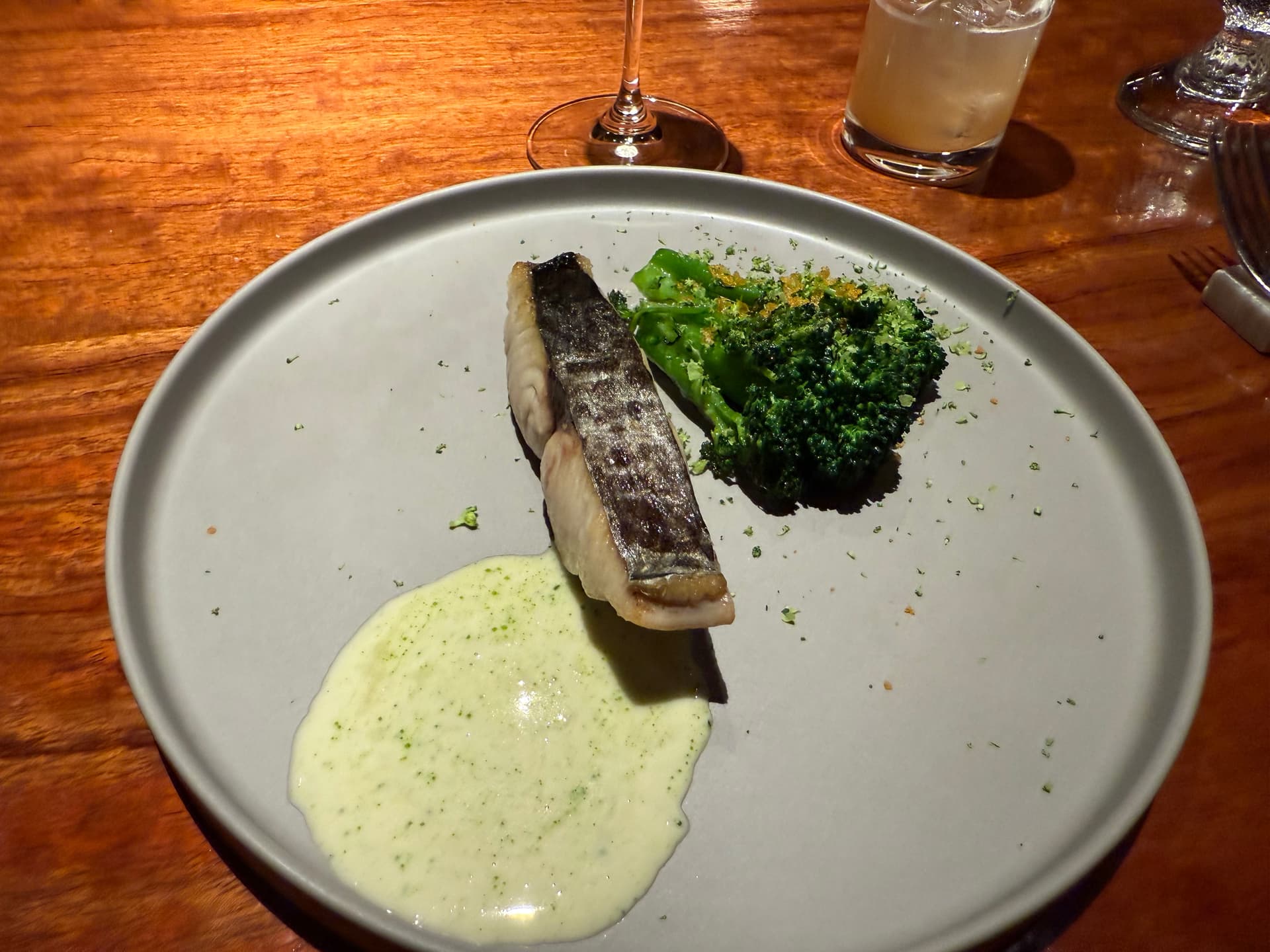 外面是酥皮里面是新鲜鱼肉的pastry。酱料是西蓝花泥。挺好吃的,能吃出鱼的鲜味,就是感觉在吃hard shell fish taco,有点出戏。