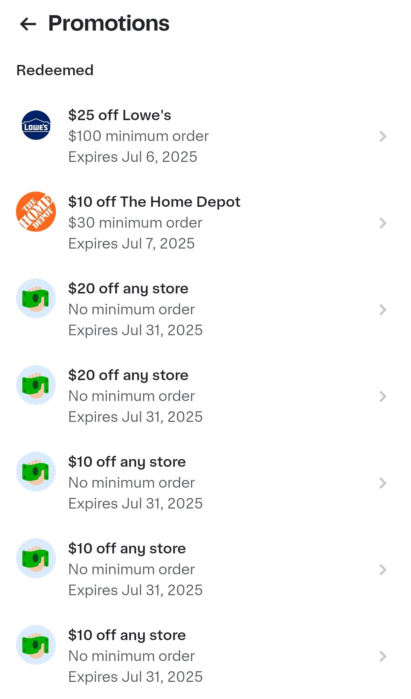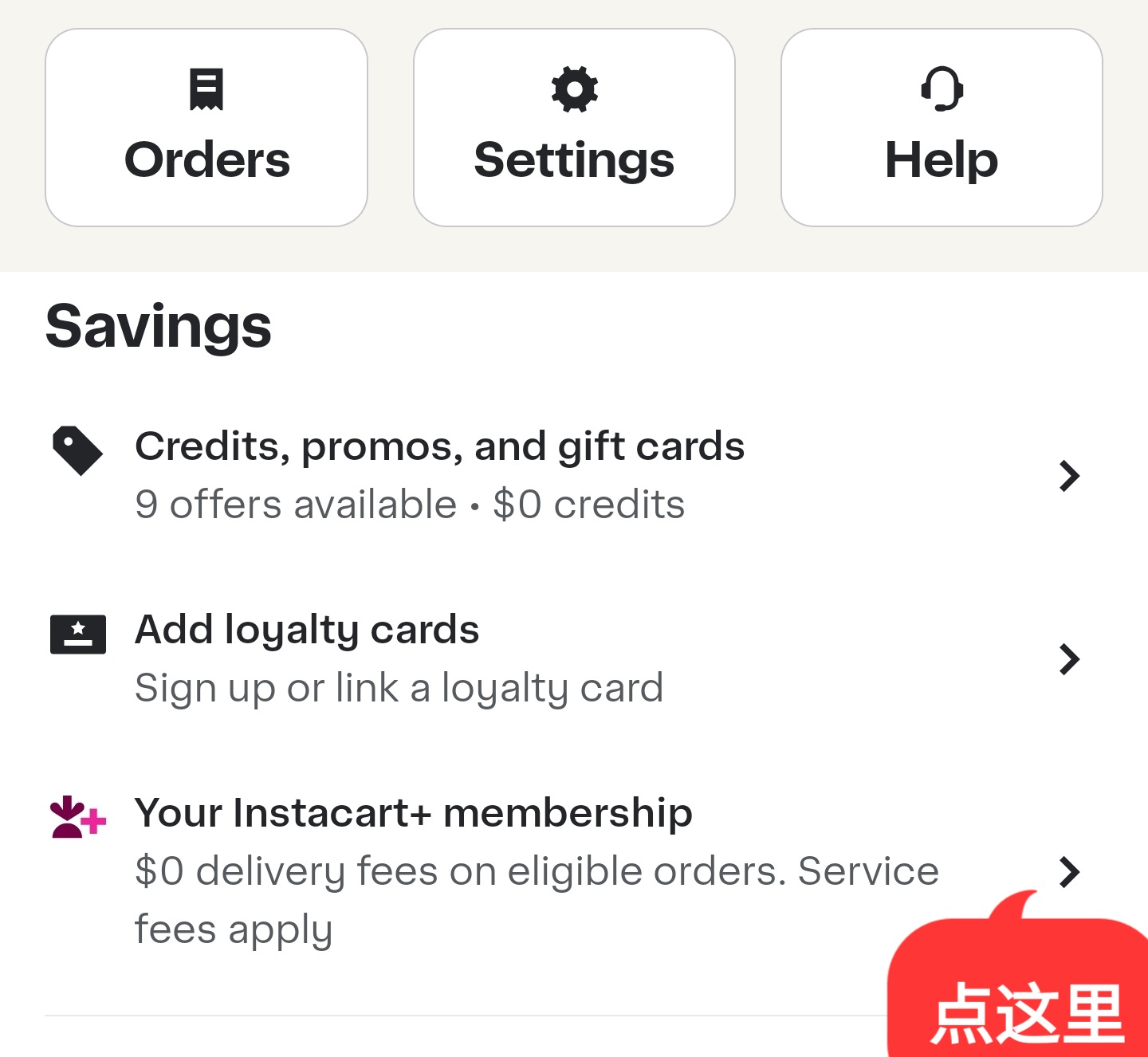 - Chase 个人卡和商业卡可以添加在同一个Instacart 个人账户里, 点击账户 —> Savings —>Credits, Promos, and gift cards 可以看到