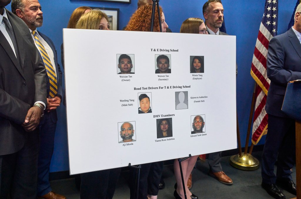T&E owner Weixian Tan, secretary Weiwen Tan, employee Winnie Yang and school road test driver Wenfeng Yang set up the scam by paying off DMV examiners Aji Idicula, Tianna Rose Andolina and Edward Tarik Queen, according to the indictment.