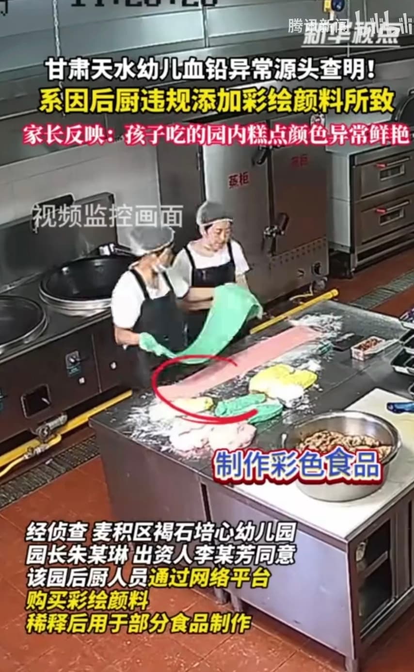 7月8日上午,甘肃省天水市联合调查组公布了当地幼儿血铅异常事件的调查结果。褐石培心幼儿园园长、法定代表人朱某琳,投资人李某芳,要求该园后厨人员通过网络平台购买彩绘颜料,稀释后用于部分食品制作。