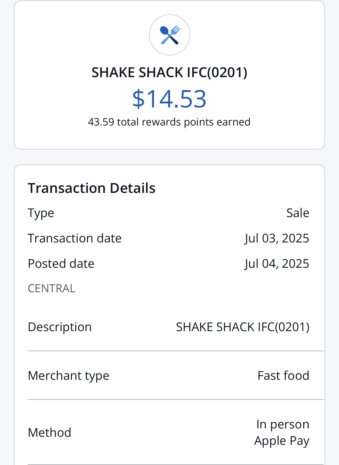 我base香港,之前史高CSP上车之后一直在香港慢慢刷开卡。前阵子看到shake shack offer就随手添加到CSP卡上了,也注意到terms写的限制US网站/app/实体店下单,所以没有当一回事。