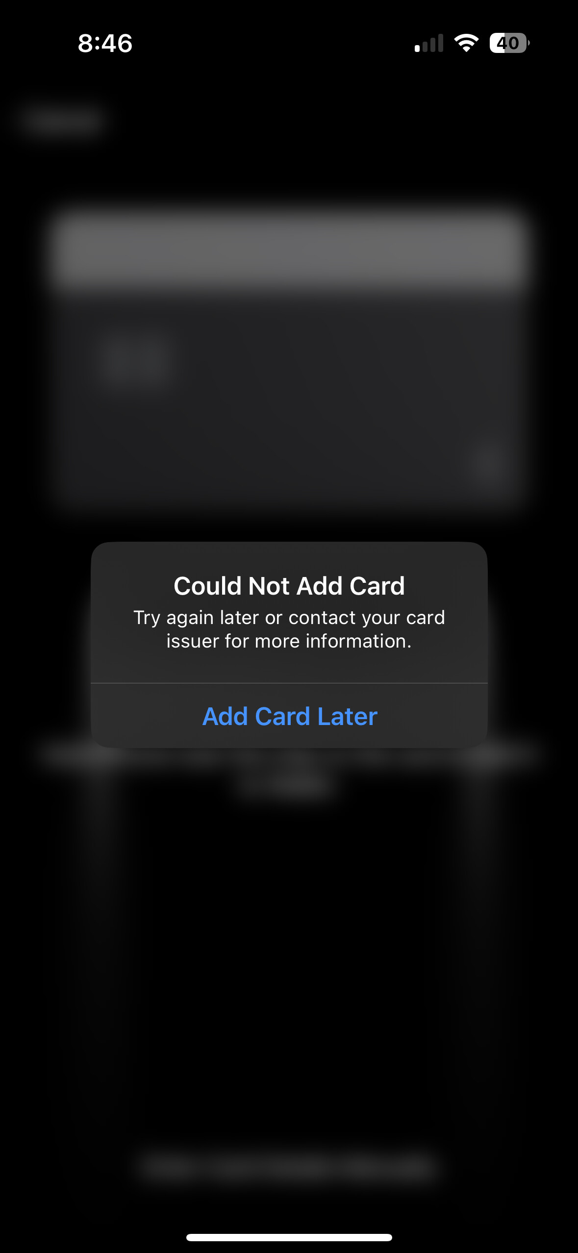 试了几张chase biz卡,全部都失败了。进去chase app里面选择digital wallet也没有biz卡的选项。是chase biz卡不能加apple pay吗?