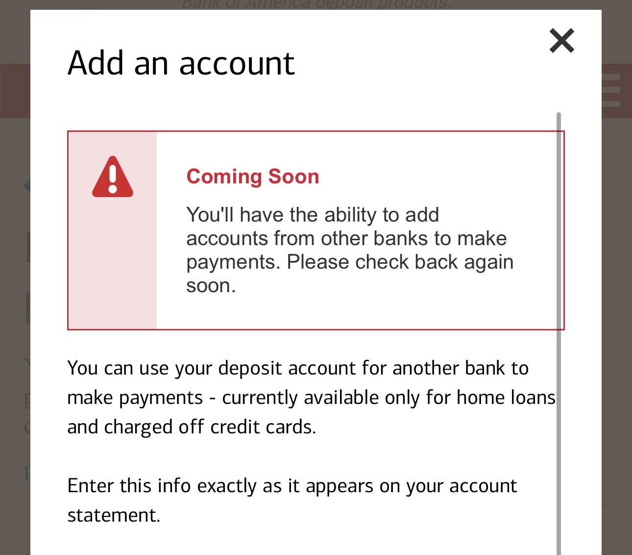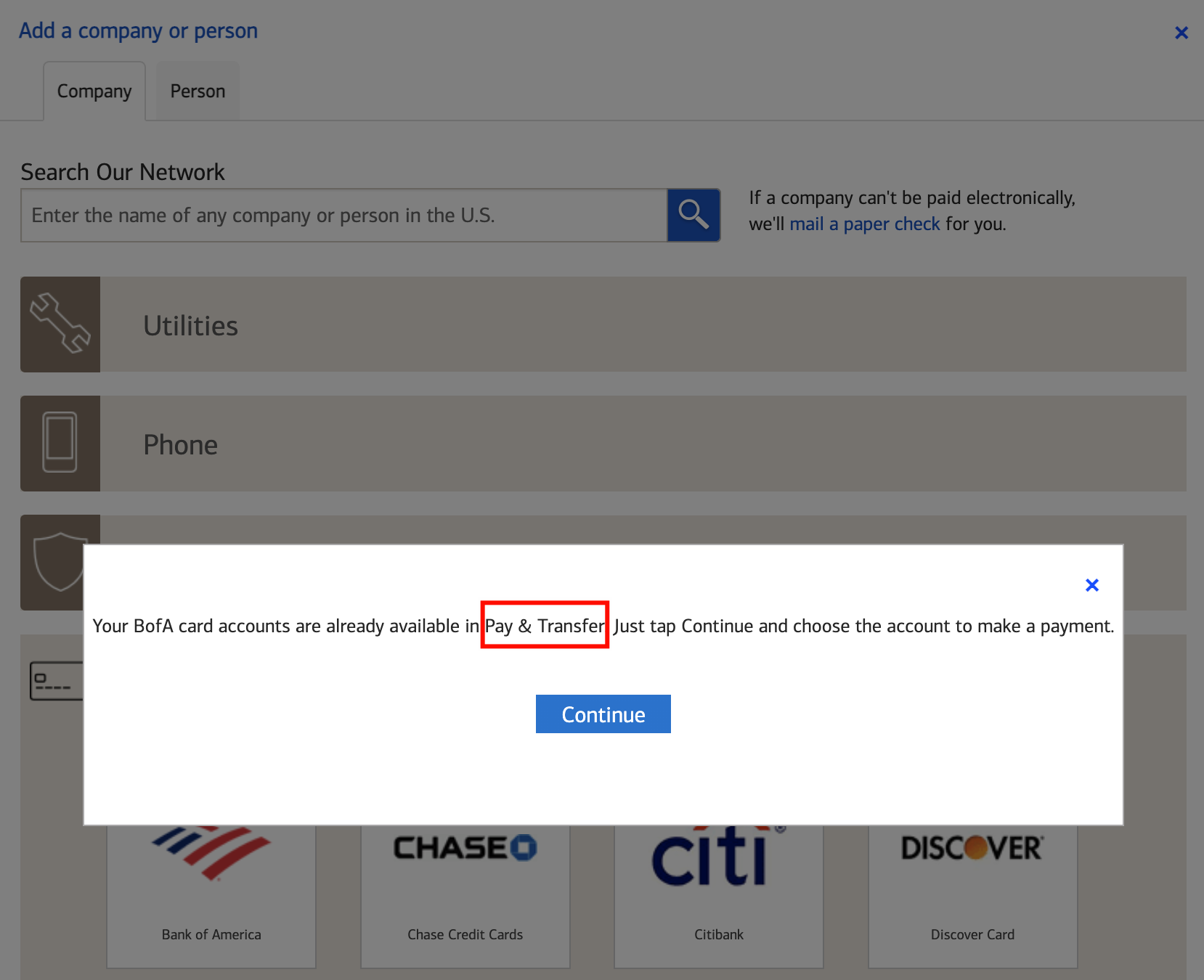 尝试通过Bill Pay支付BoA credit card,会让用新的UI。