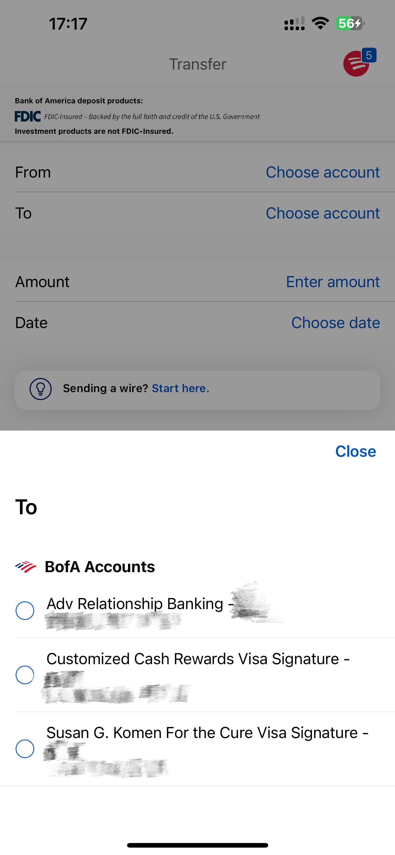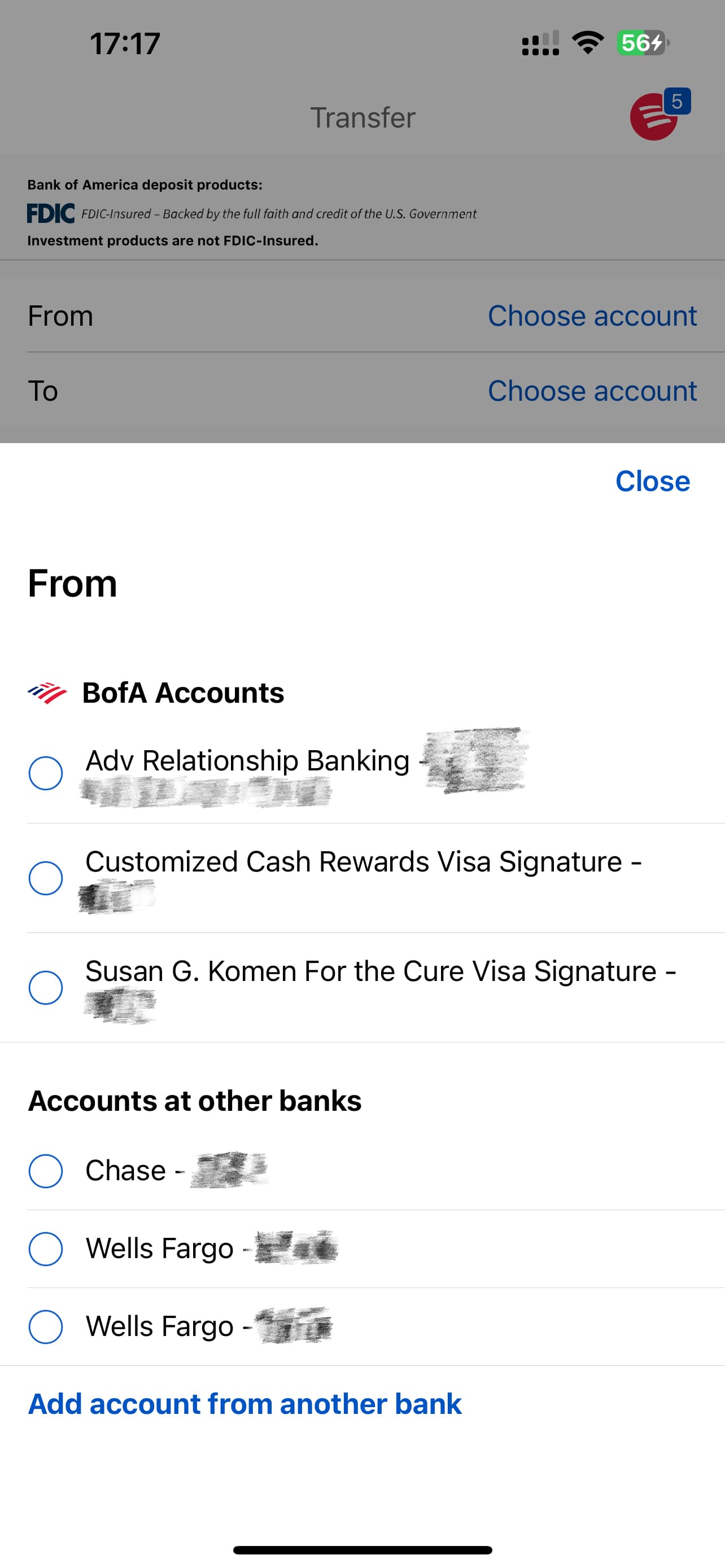 结果 如果上面from选了其他银行的账户 那to就只能选boa的信用卡(这里我没截好懒得重新截图了 把那个boa的账户去掉就对了)