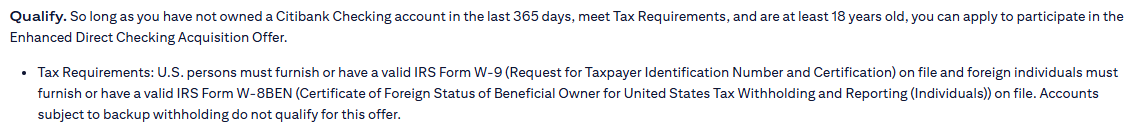 我 10.30 开户,citi 1 月份的时候给我发了个邮件叫我去更新税表,因为没有 taxpayper identification number (TIN),我前几天去更新了 W8 BEN,今天问客服说我不符合要求,因为:
