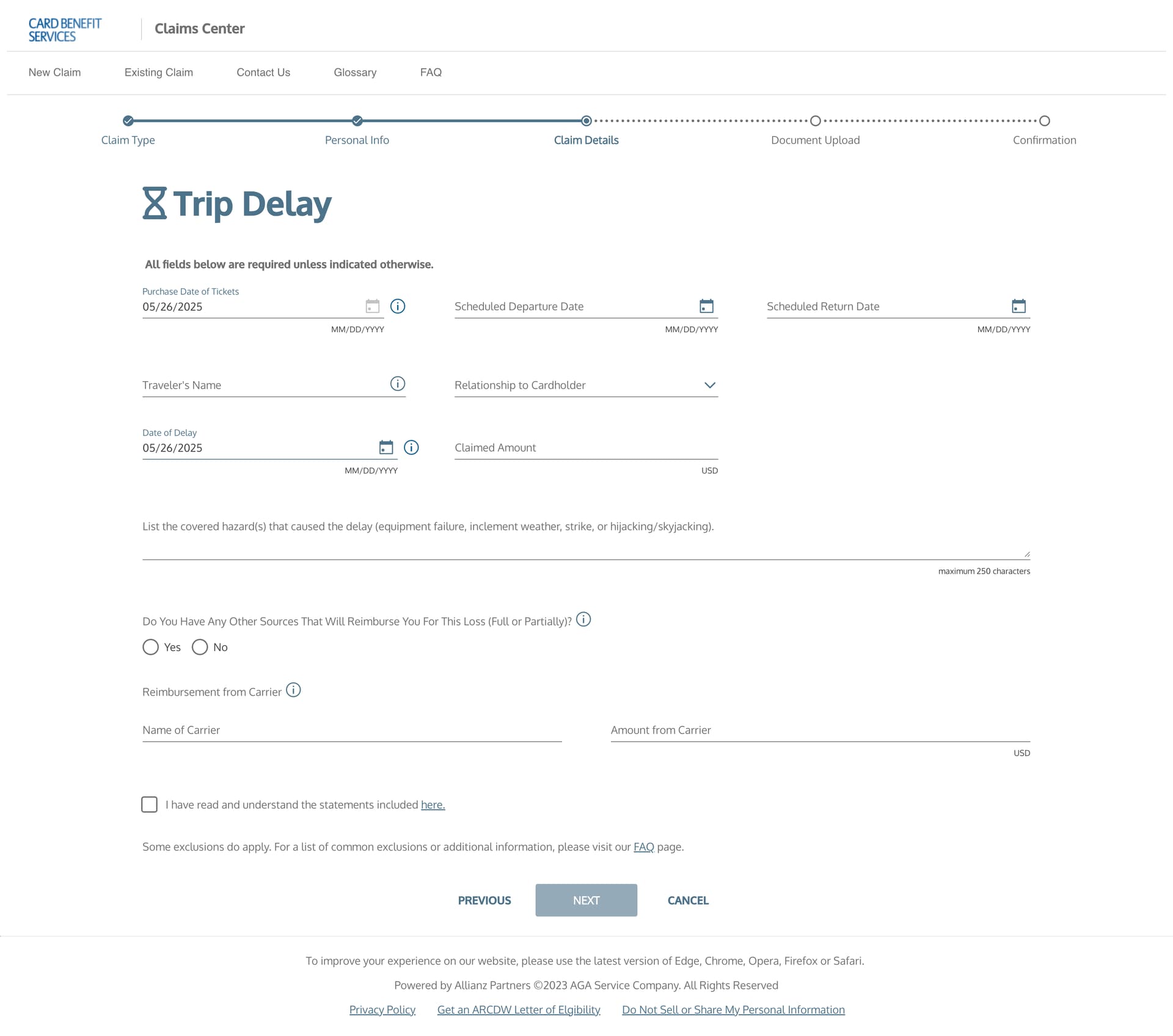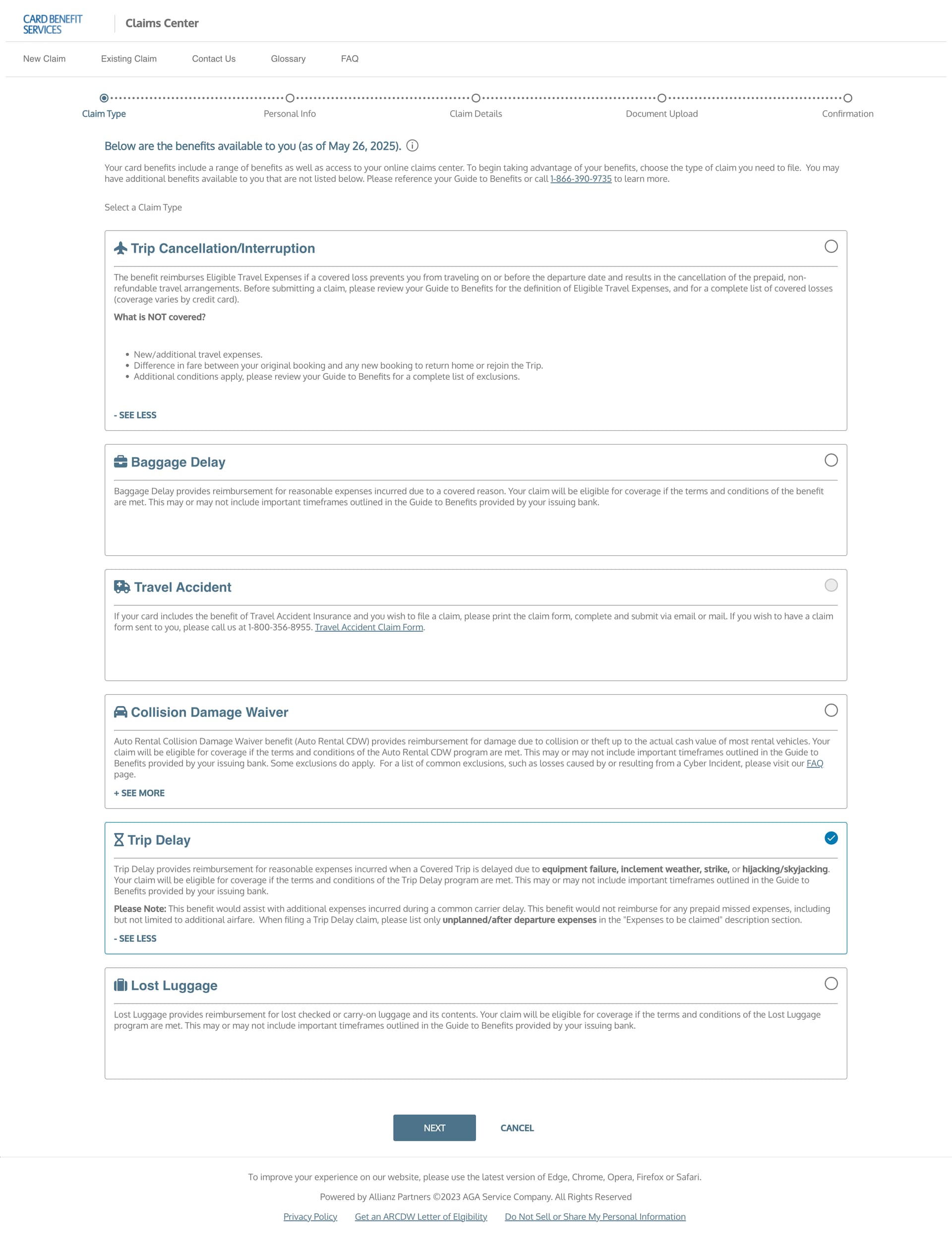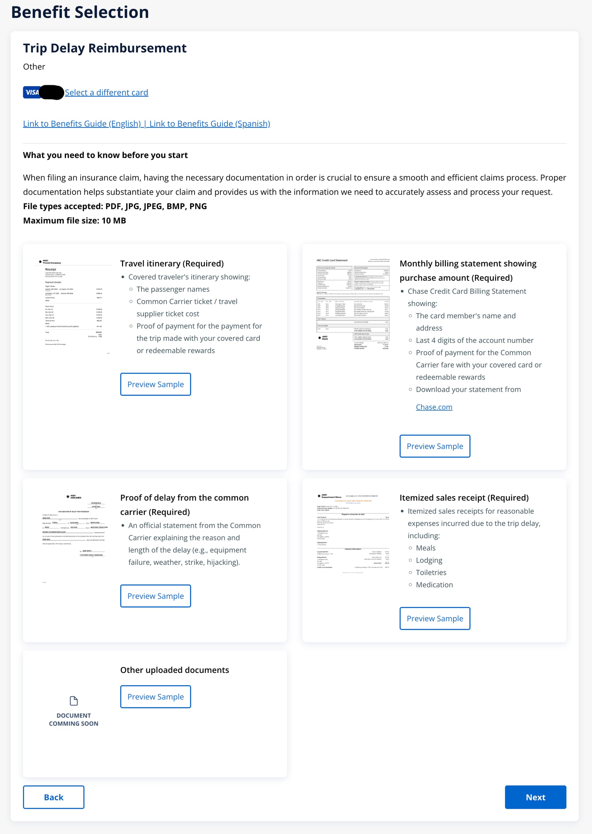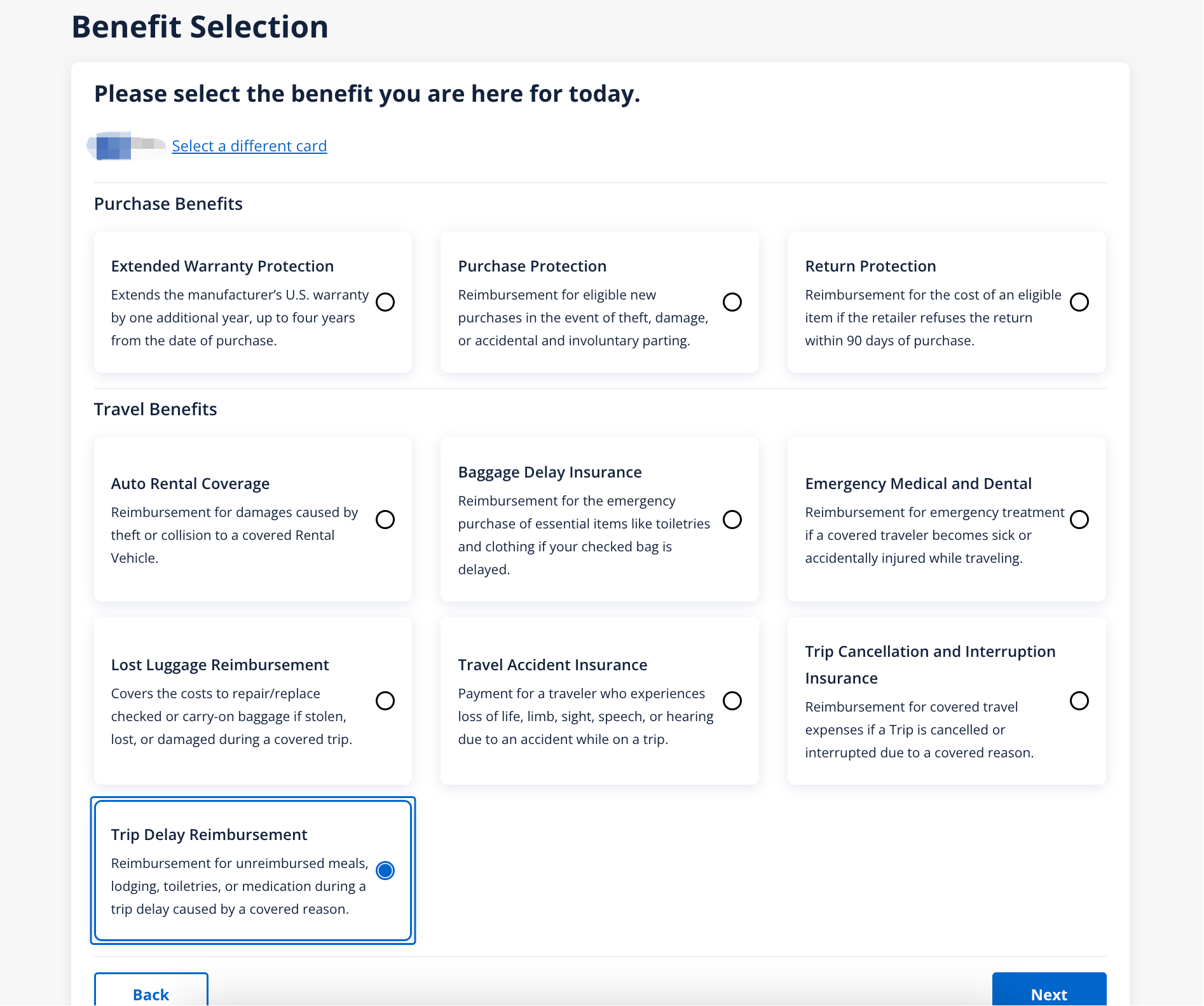 原来的话,Chase/BOA/USBank几家都用的是同一家网站,囊括了各种信用卡保险比如行李延误/丢失,行程延误/中断,汽车碰撞,旅行事故等等。算是一站式解决。