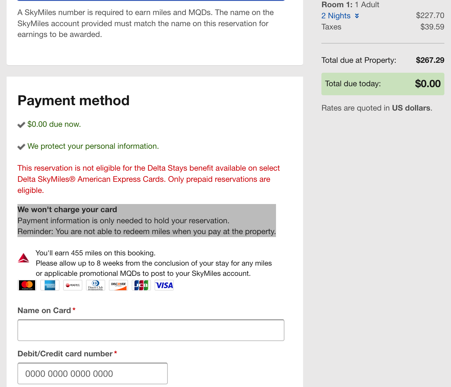 不同酒店的付款方式有区别的,有的酒店就是不能prepaid。你到支付那步的时候会有提示是否credit eligible: