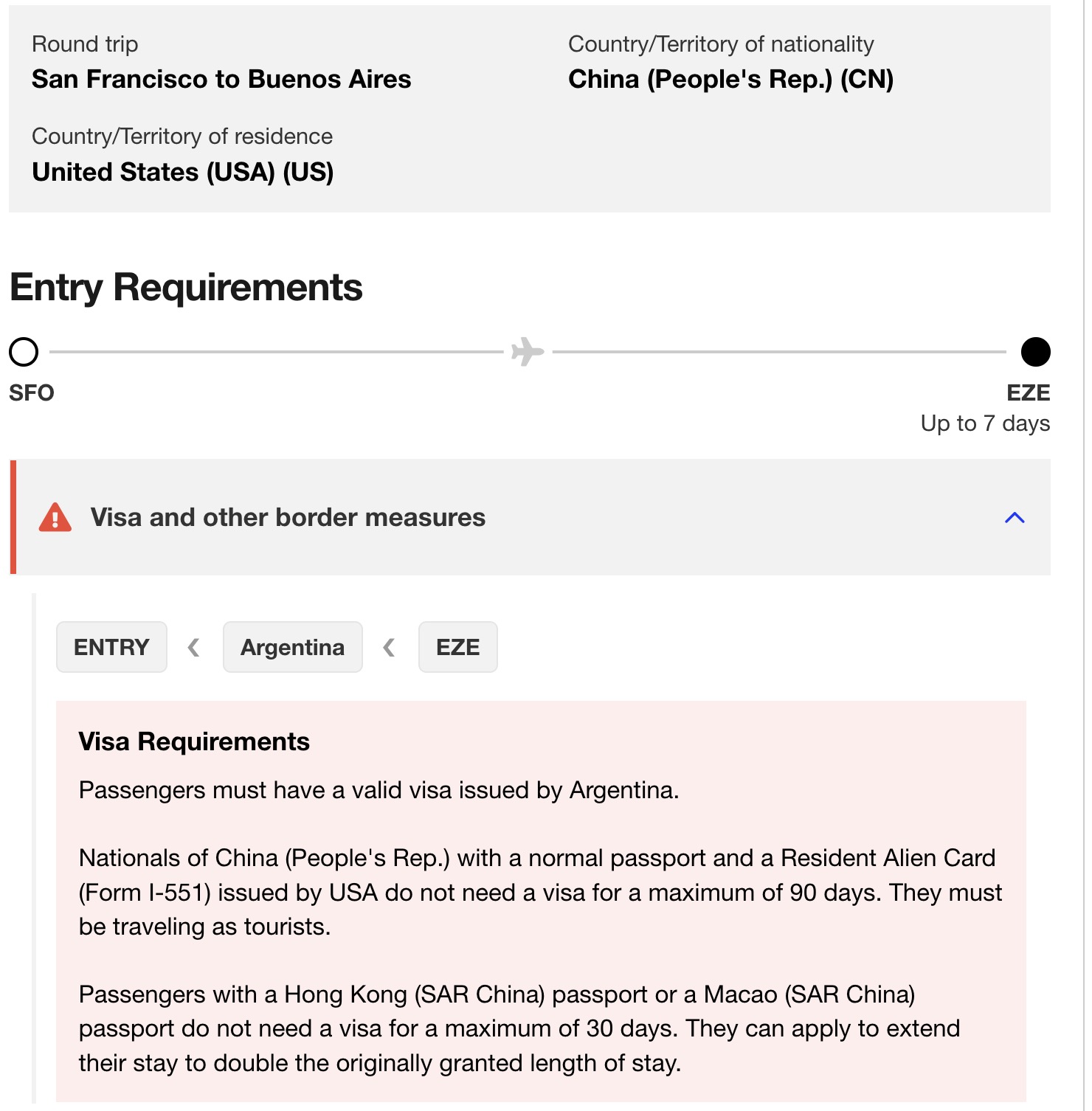 IATA查询的时候选择居住地美国,会出现绿卡免签