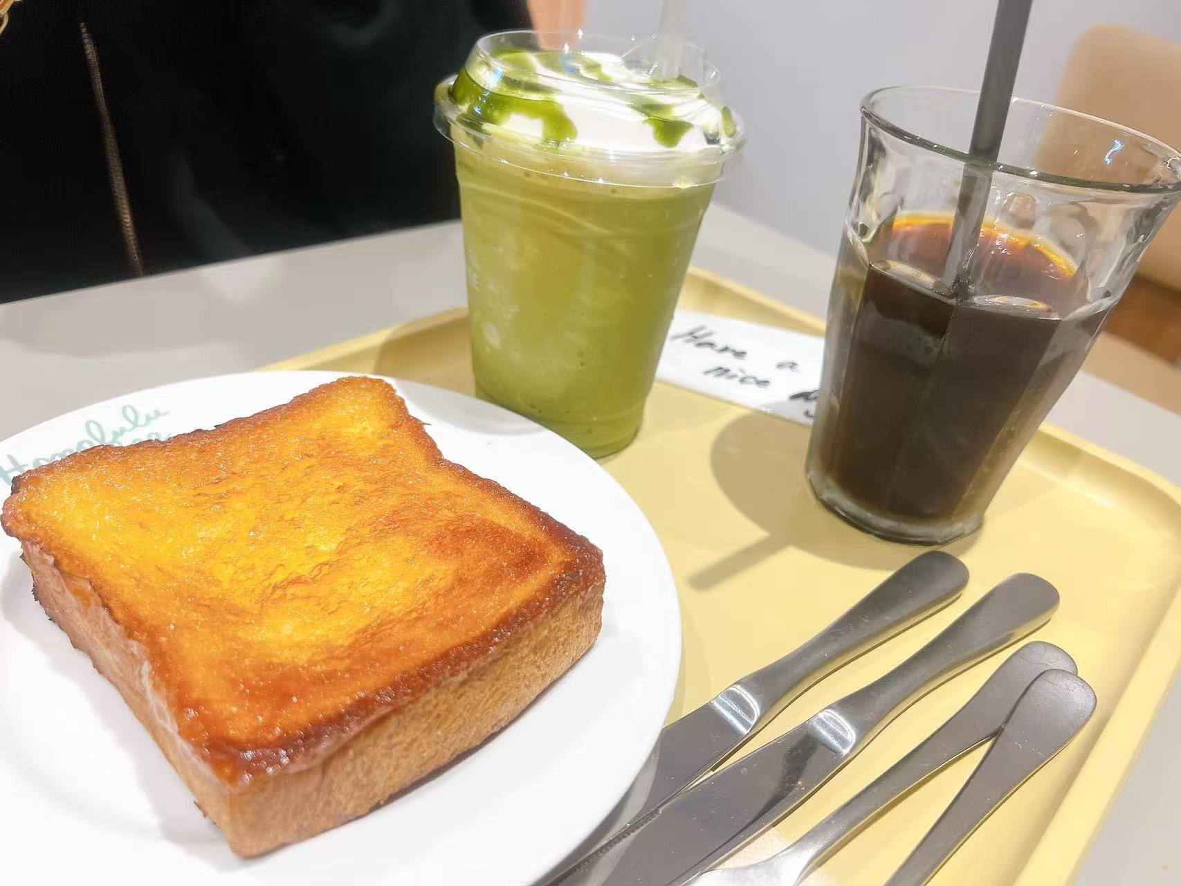 “说实话还行啊,东西不贵,味道也不错,面包酥皮烤的焦焦的有那个什么美化反应,抹茶拿铁奶味很浓,冷萃的味道很香,基本吊打我们家(指DC)周边了吧。”