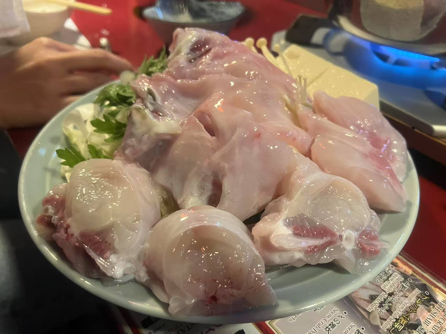 P2 生斩河豚,用来下火锅煮河豚鱼汤,极其新鲜,肌肉纤维还在跳动