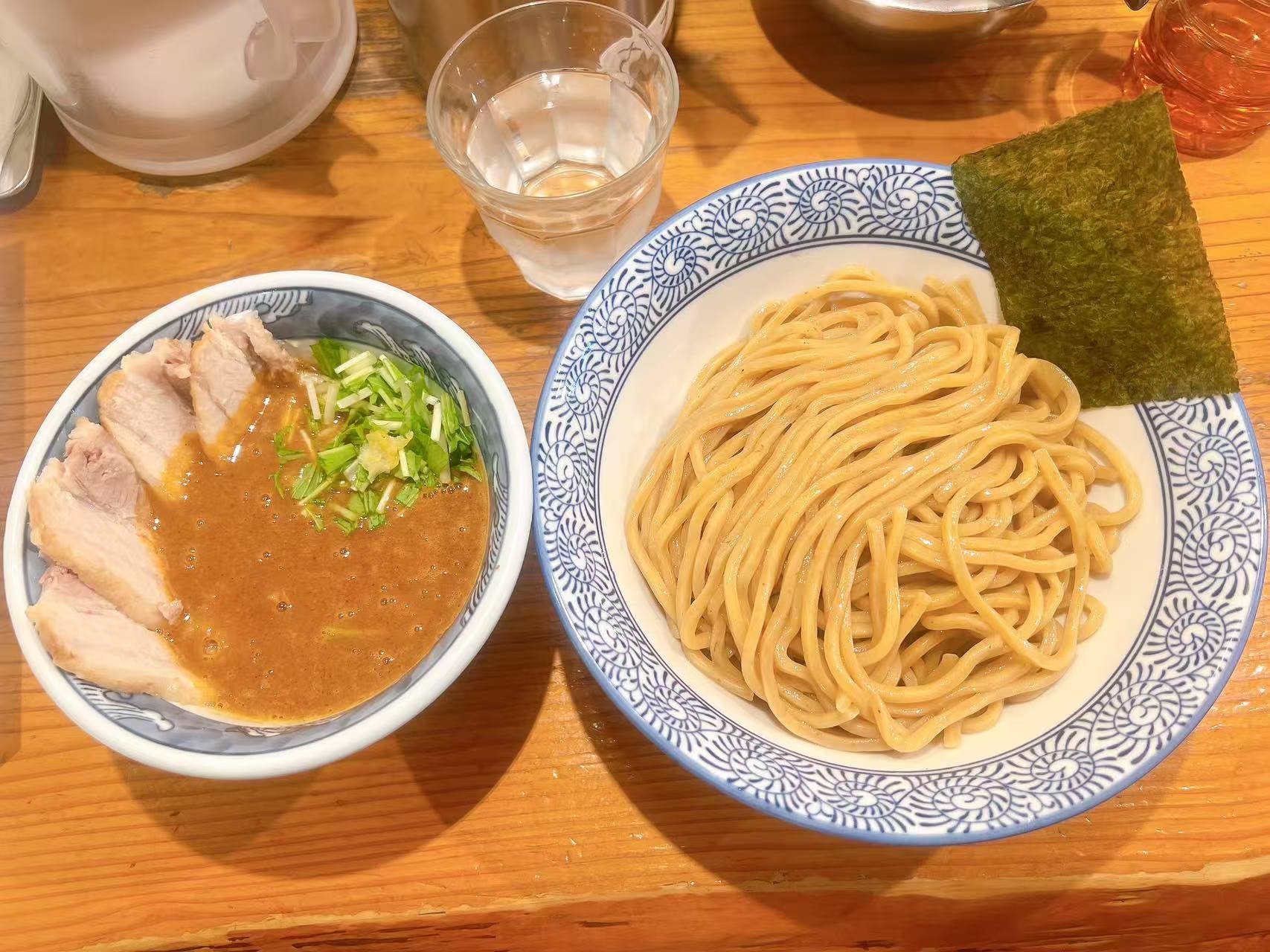 究极的好吃+亲民的价格!汤底应该是打碎的猪骨和鸡骨炖的,极其厚重浓郁,蘸面则是手工荞麦面,里面有小哥现场制作。一份面的价格只有大约1k-2k JPY,量大实惠,不用额外加任何东西都已经吃撑了。