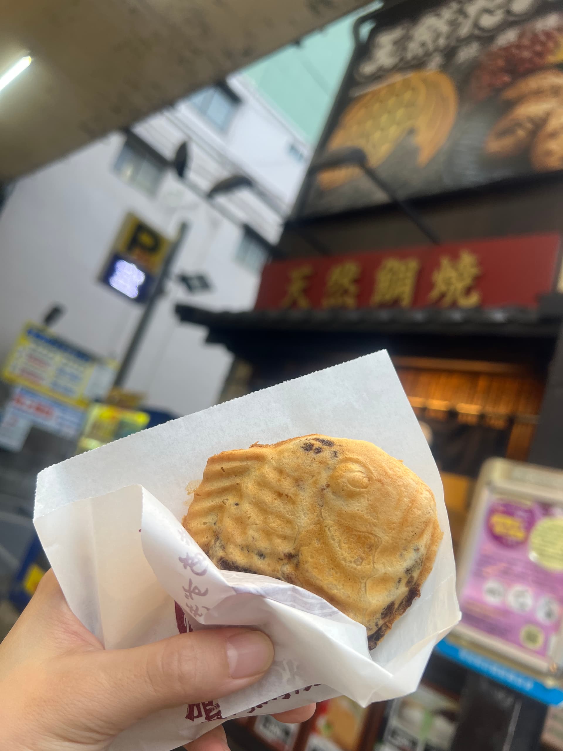道顿堀的街边小吃店数量很丰富,品类繁多且价格不算贵。女友是鲷鱼烧爱好者,这几天来吃了不下五家鲷鱼烧,评价是道顿堀这家天然鲷烧最好吃xd