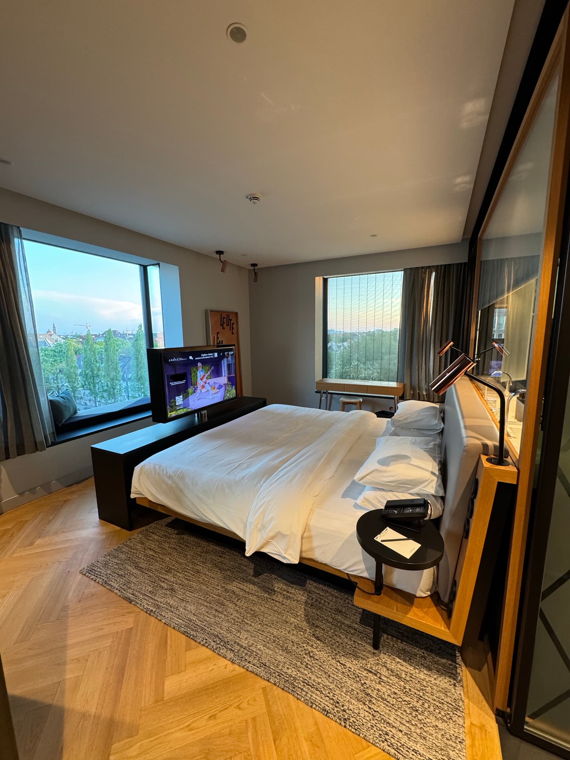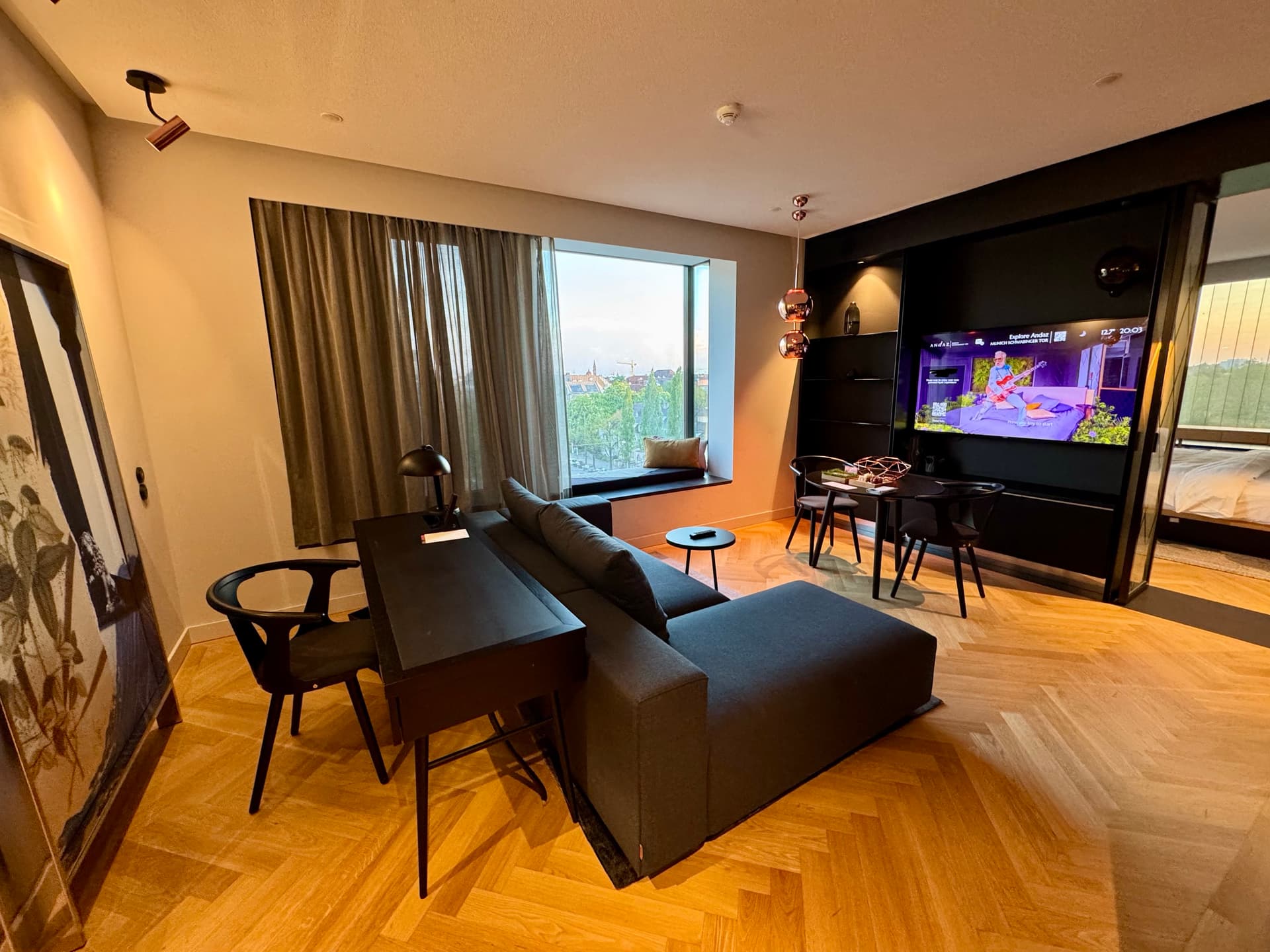 酒店我们住的是Andaz Munich。这个酒店非常新,服务也很棒。我们是拿分数换了三个晚上,免费停车,还给作为环球客的我们升级到了大套房。免费早餐堪称此次德国行最佳,种类多又美味。Late check‑out 时还送了不少零食和 smoothie,份量大到那天连晚饭都省了……总之强烈推荐!