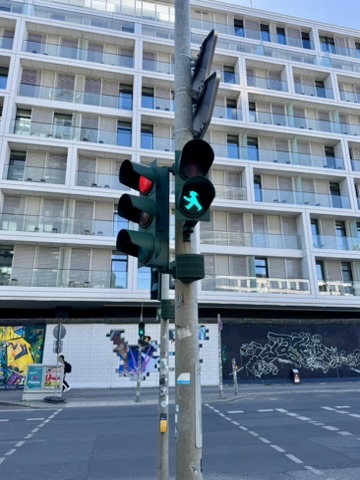 最后,东德留存至今的一大文化符号就是它的红绿灯。绿灯行人标志不是常见的火柴人,而是一个迈步、头戴宽边帽的“小绅士”——本名 Ampelmännchen。这位小哥诞生于 1961 年,由交通心理学家 Karl Peglau 设计,初衷是让儿童和老人也能一眼分辨灯色。