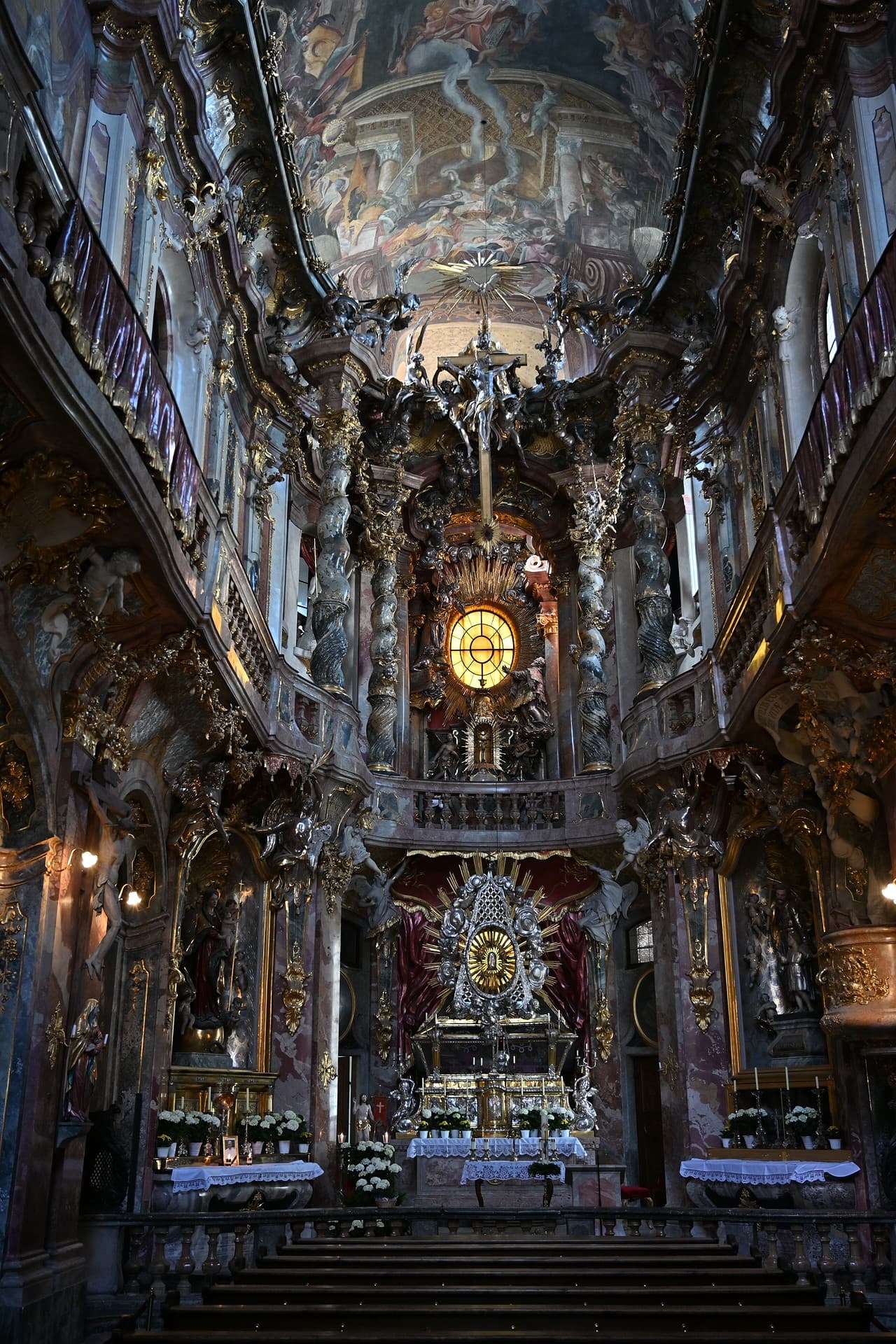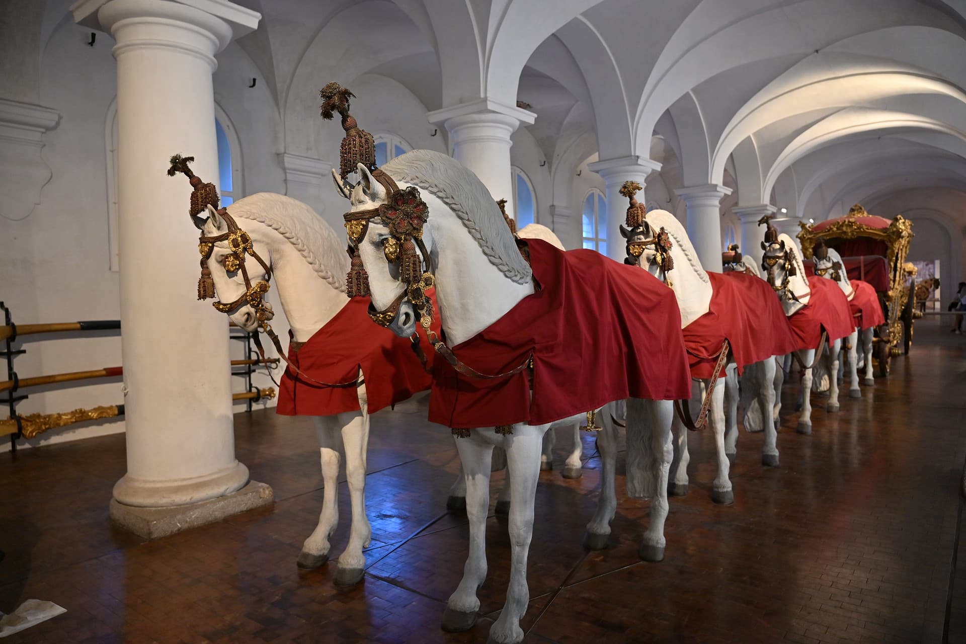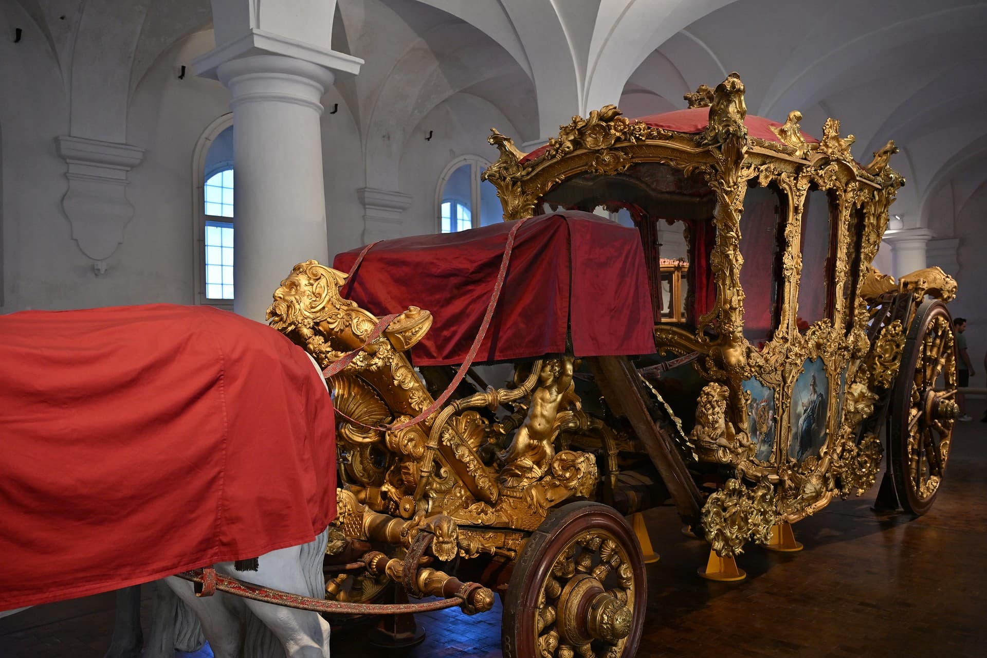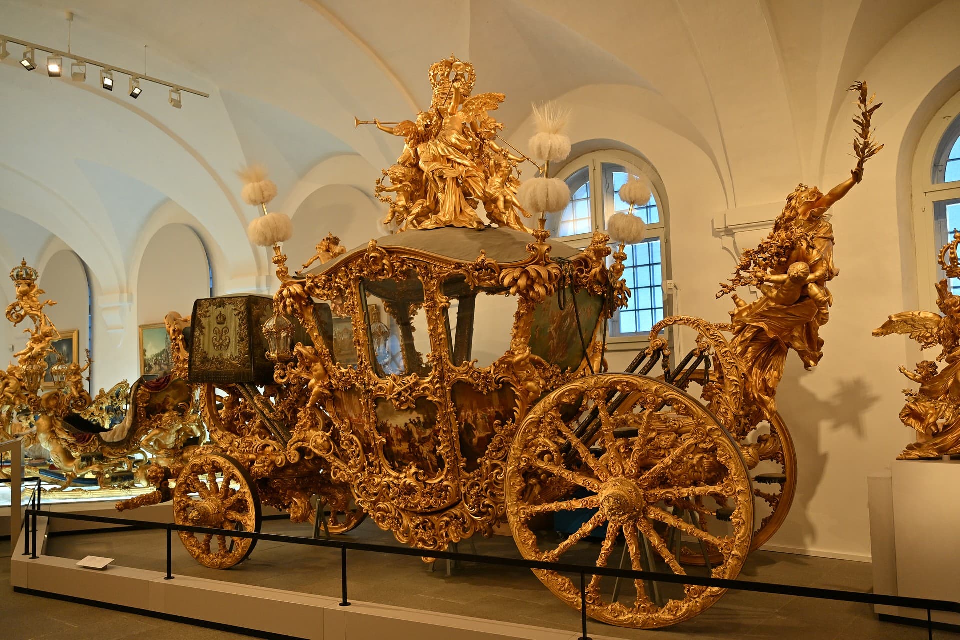 巴伐利亚王室后期深受法国文化影响,末代国王路德维希二世的爷爷开始仿造凡尔赛宫,建成面积更大、装修更豪华、花园更美的宁芬堡。整座王宫占地广阔,分为前花园、后花园、主宫殿,以及左右两侧的副宫和行政楼。个人觉得看主宫和著名的马车博物馆就够:主宫殿里能见到金碧辉煌的法式大厅;马车馆则陈列着壕无人性的纯金马车(甚至还有纯金雪橇),而且不止一辆!让人慨叹当年巴伐利亚是真的太有钱,极尽奢靡地追求艺术与享乐。又想吐槽一句:但凡当初多花点钱在军队上,最后也不至于被北方的“穷鬼”普鲁士无情兼并。