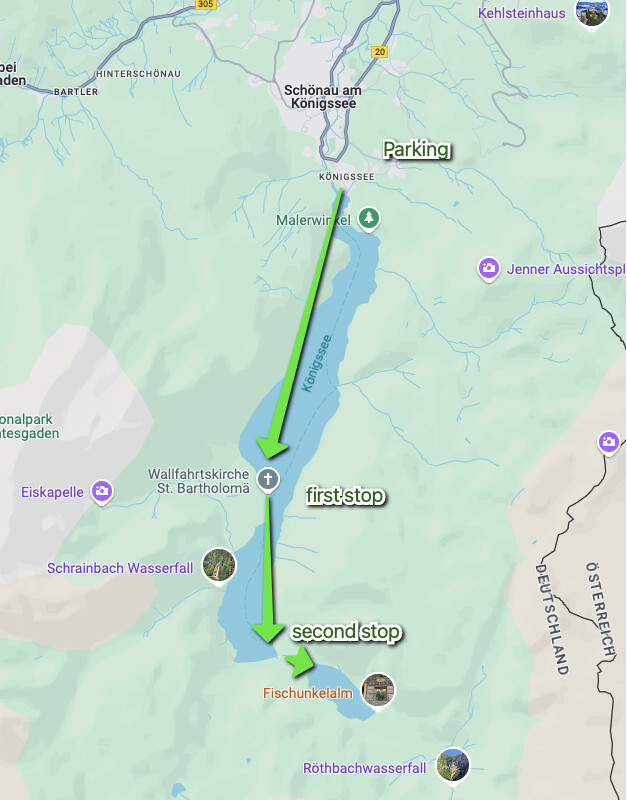 另一个不可错过的自然景点就是国王湖。湖区距慕尼黑约两小时半车程,但沿途风光优美,开车并不累。导航务必先设 Bad Reichenhall小镇,再前往国王湖,否则容易误入奥地利收费路段。停车后买船票登船,途中停两站:第一站有教堂和餐厅;第二站到上湖入口,再步行约十分钟到上湖。一路风景绝美,无论拍风光还是人像都非常出片。